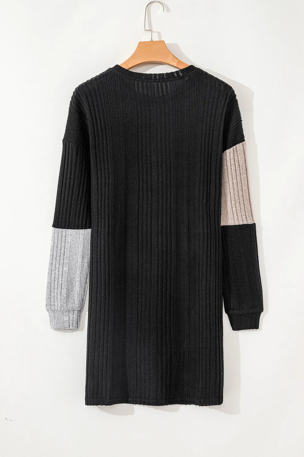 Velste Color Block Drop Shoulder Long Sleeve Mini Dress