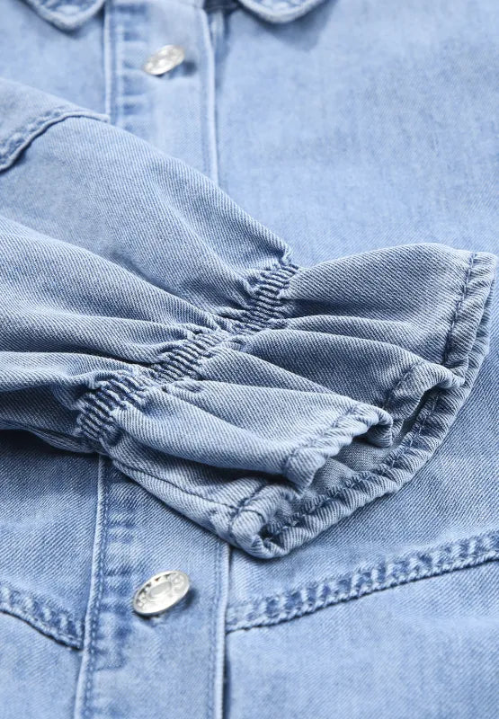 Velste Distressed Collared Neck Flounce Sleeve Denim Dress