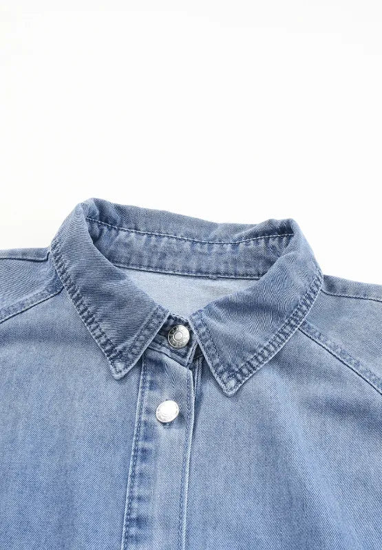Distressed Collared Neck Flounce Sleeve Denim Dress