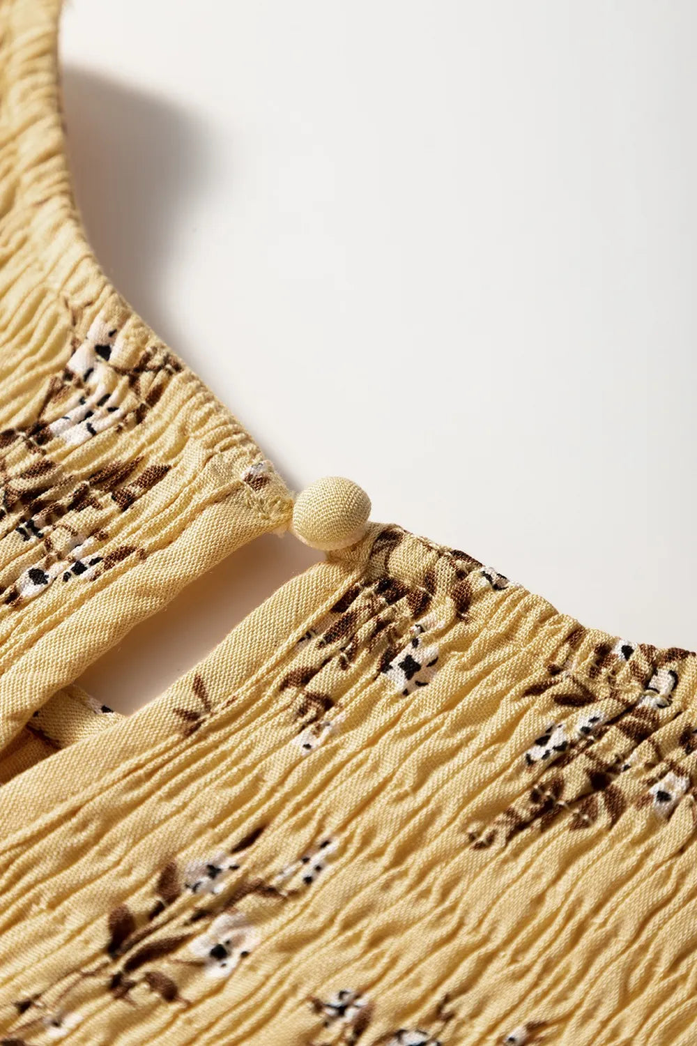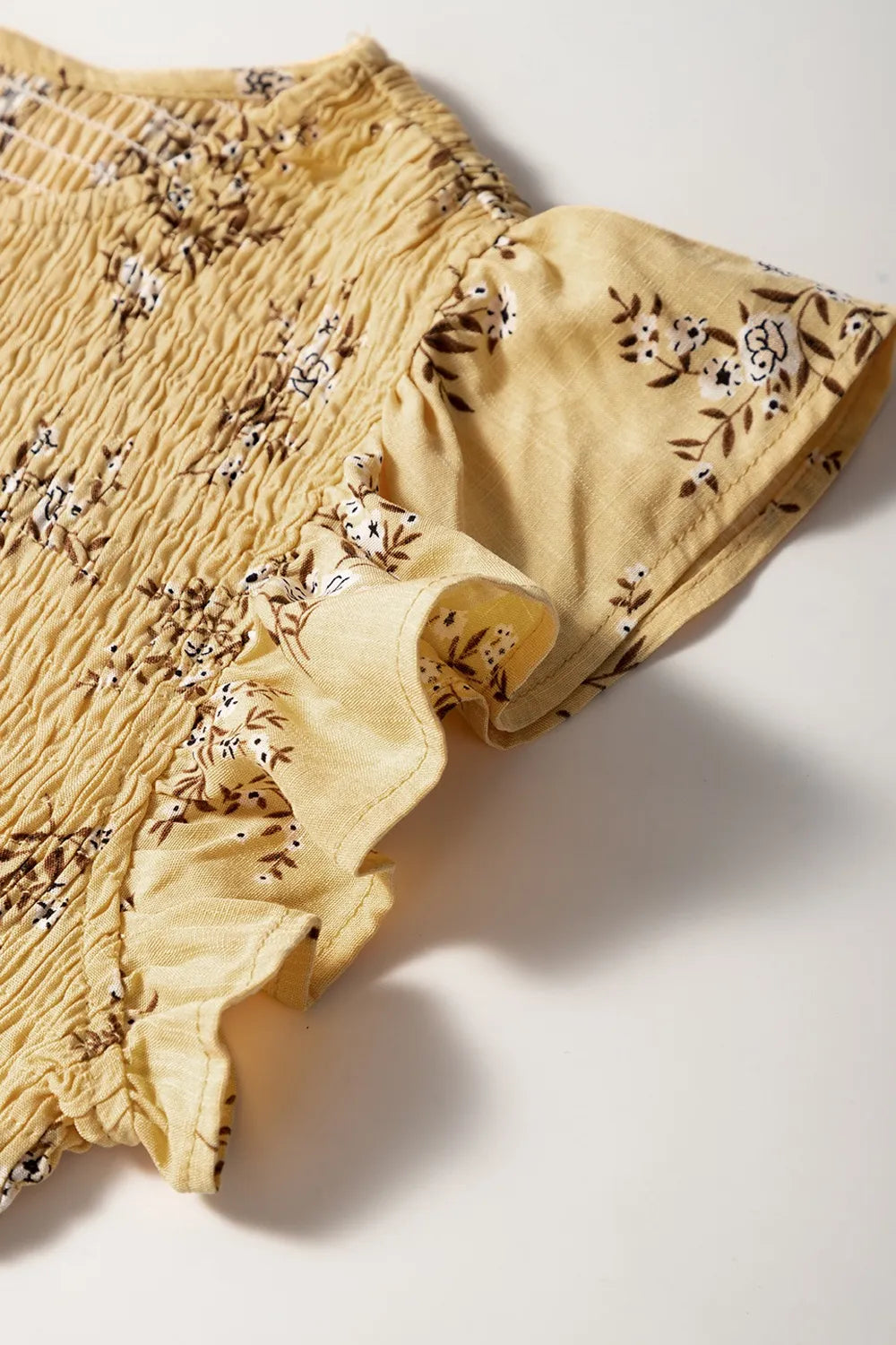 Floral Print Ruffle Cap Sleeve Smocked Flowy Dress