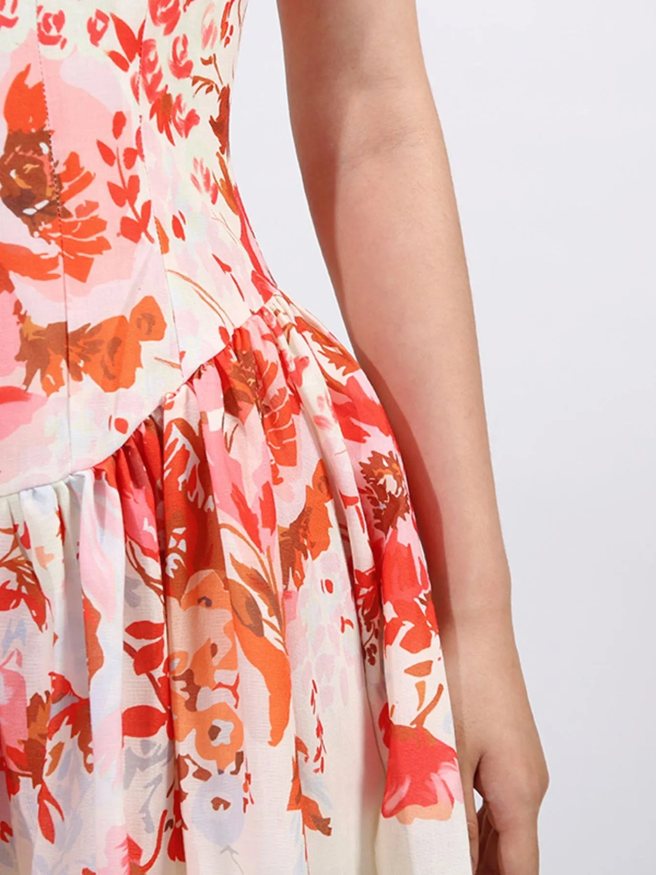 Velste Floral Print Sleeveless A-Line Mini Dress