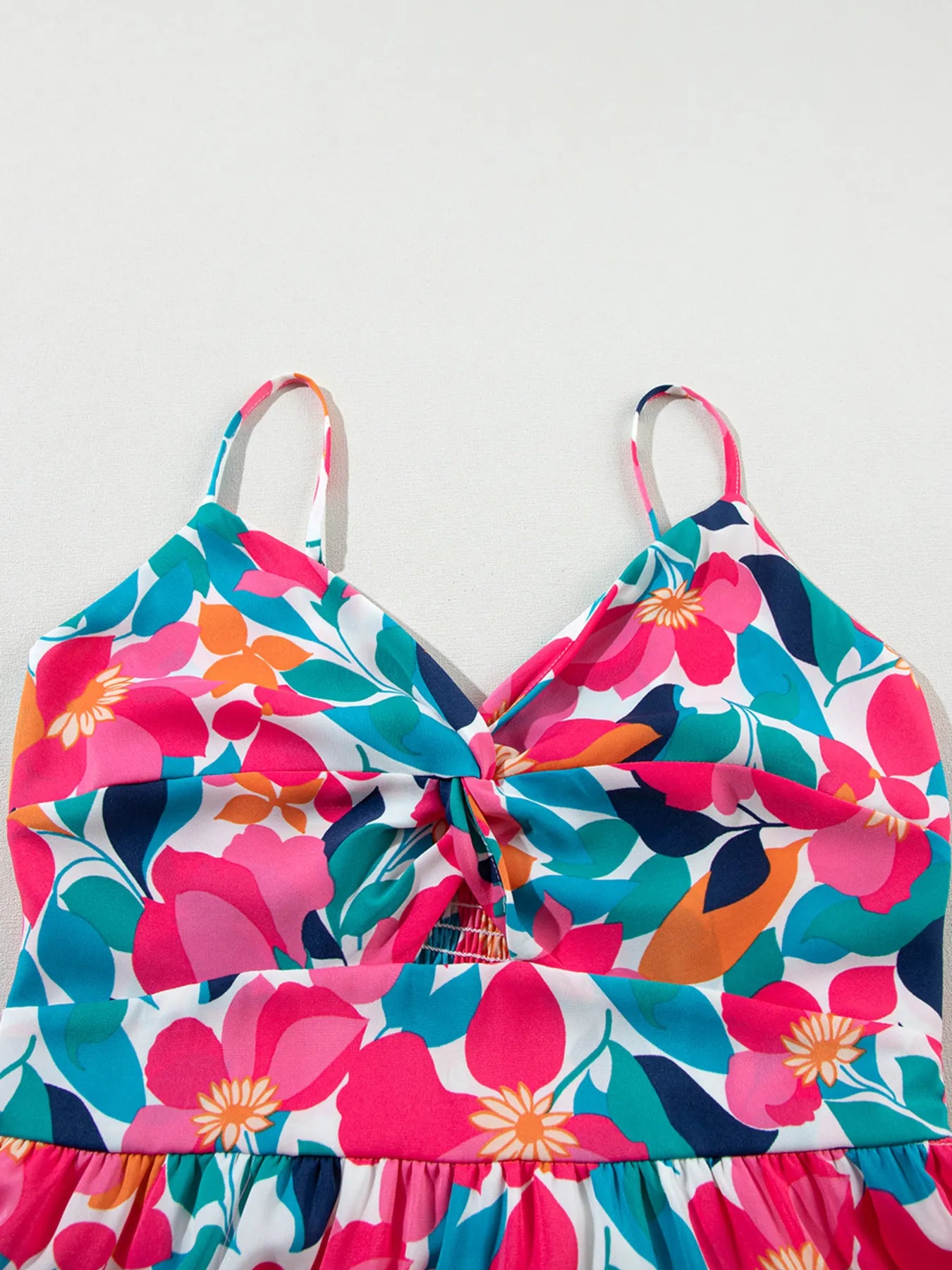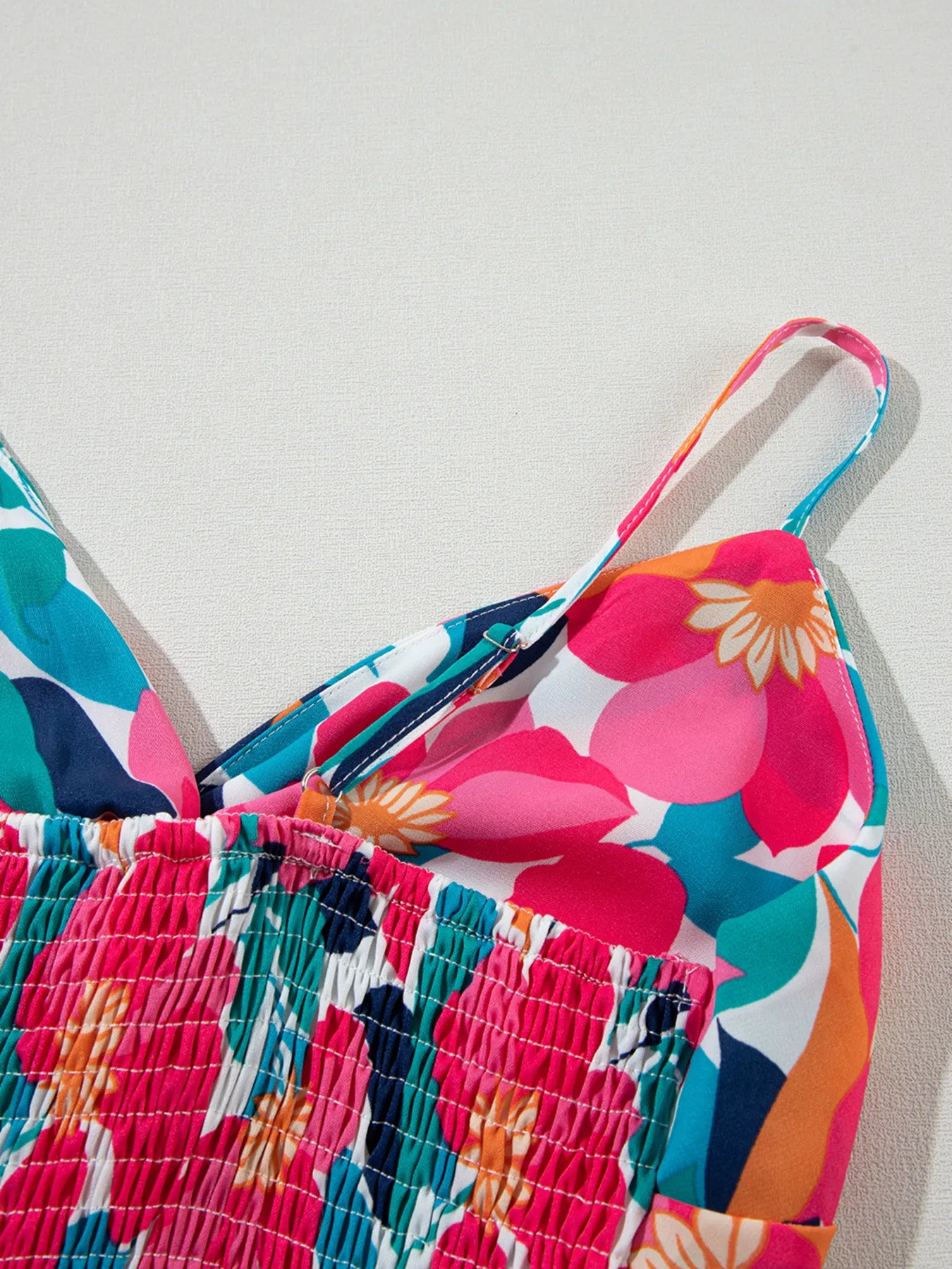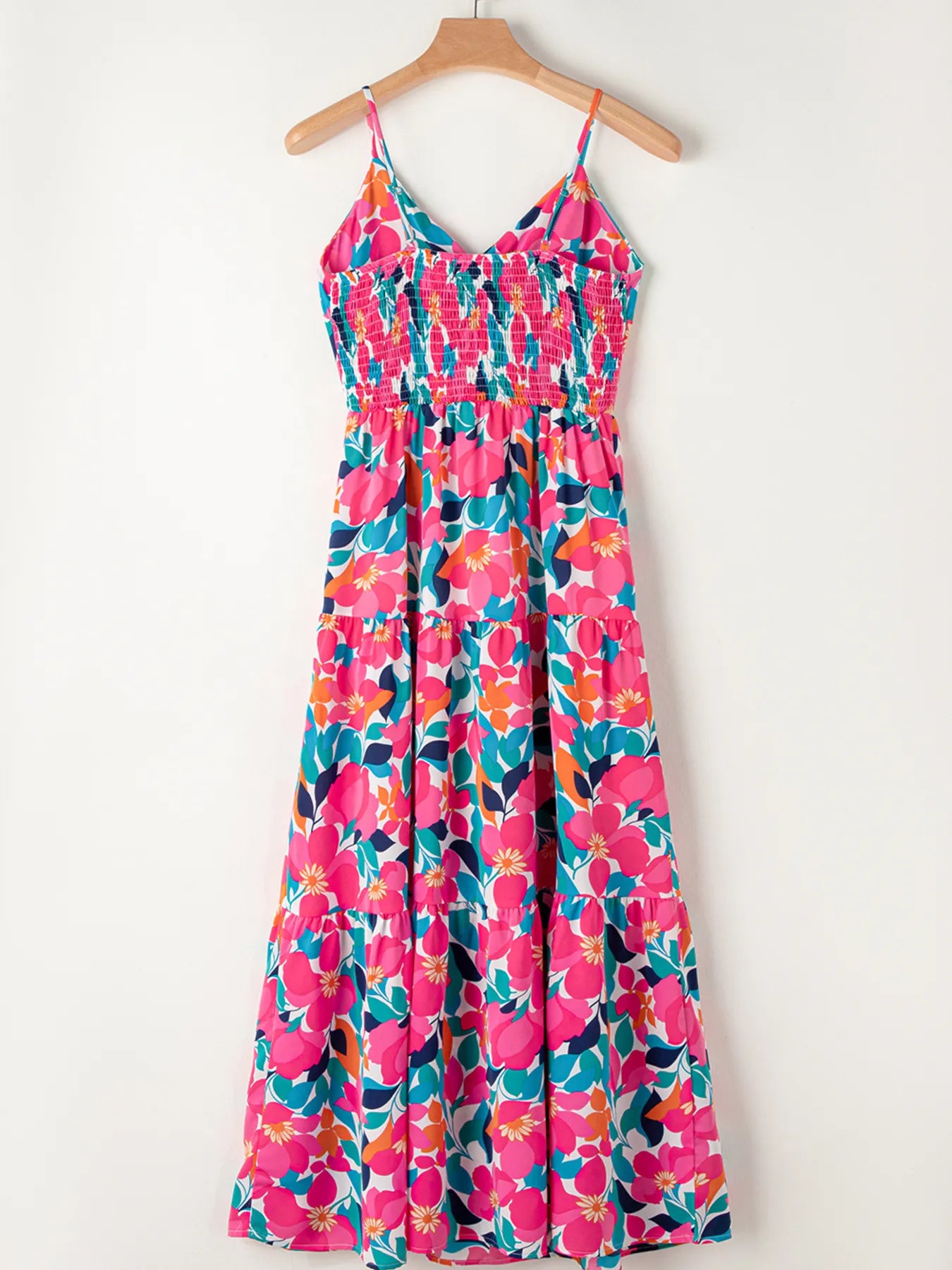 Floral Twisted Smocked Back Tiered Maxi Dress