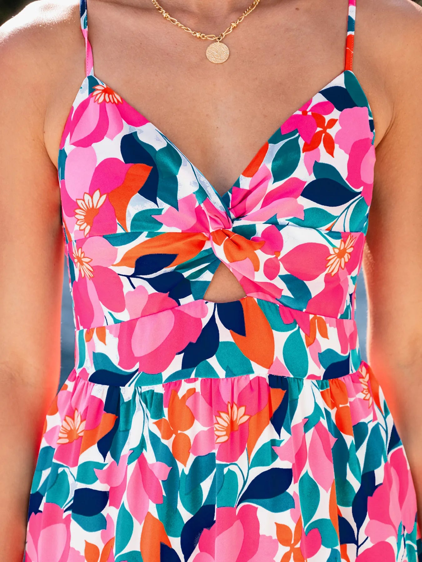 Velste Floral Twisted Smocked Back Tiered Maxi Dress