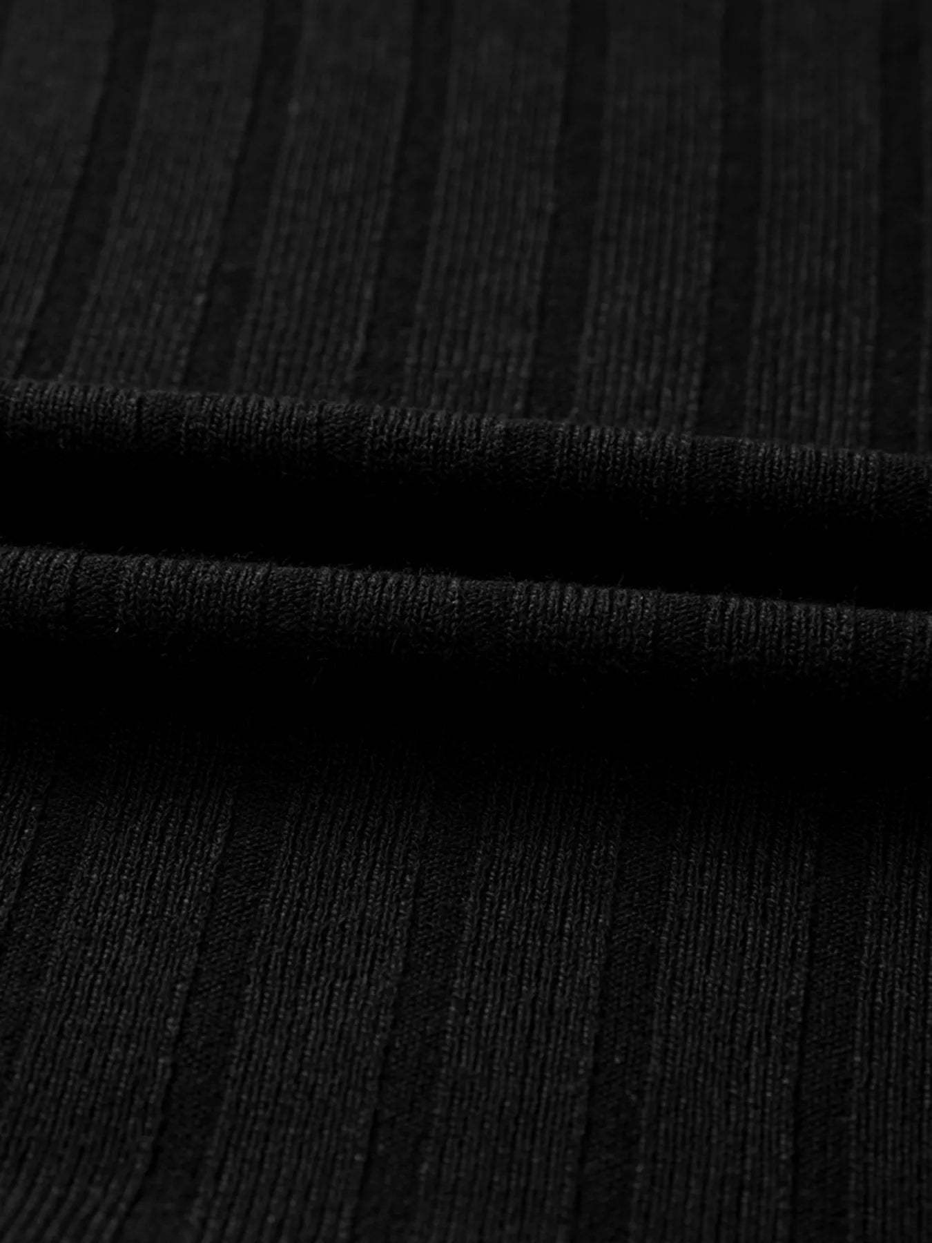 Velste Frilled Neck Ribbed Knit Patchwork Long Sleeve Mini Dress
