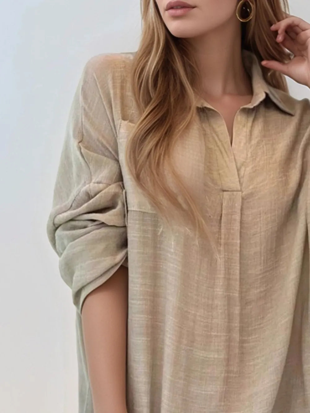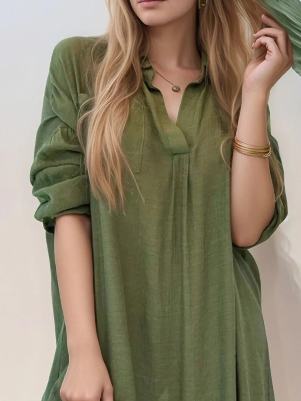 Full Size Side Slit Roll-Tab Sleeve Mini Shirt Dress Plus Size
