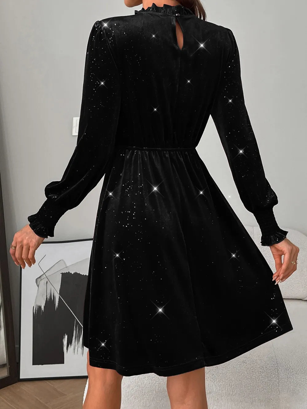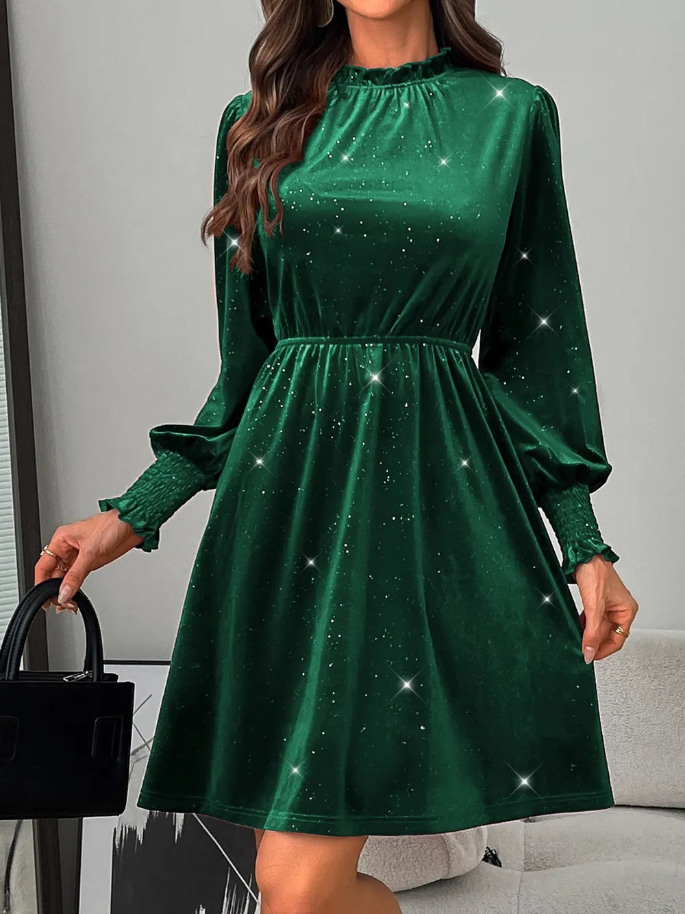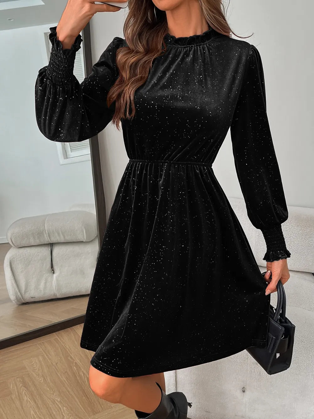 Velste Glitter Mock Neck Long Sleeve Mini Dress
