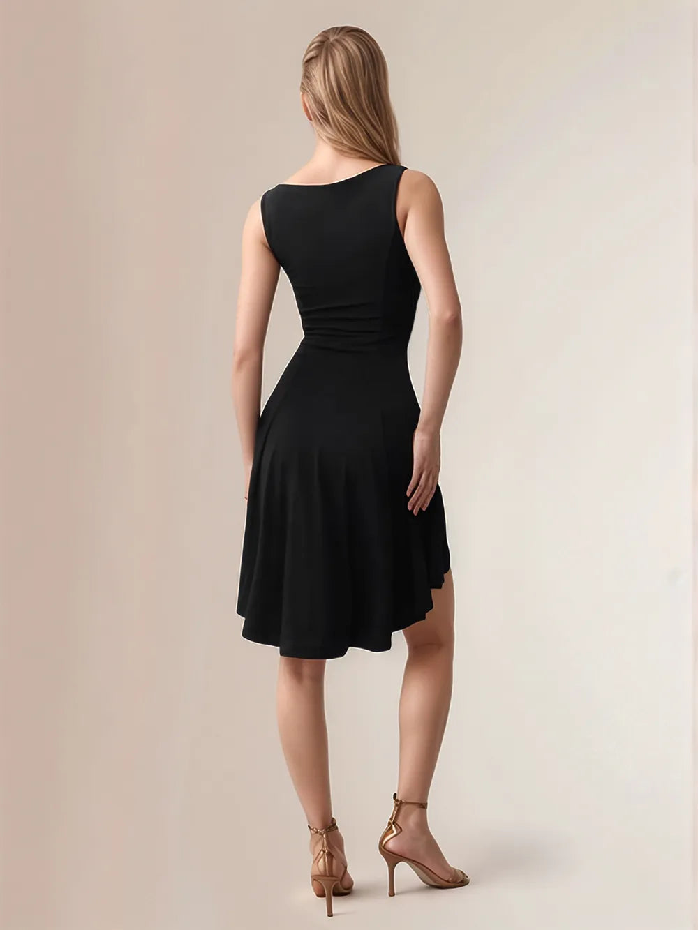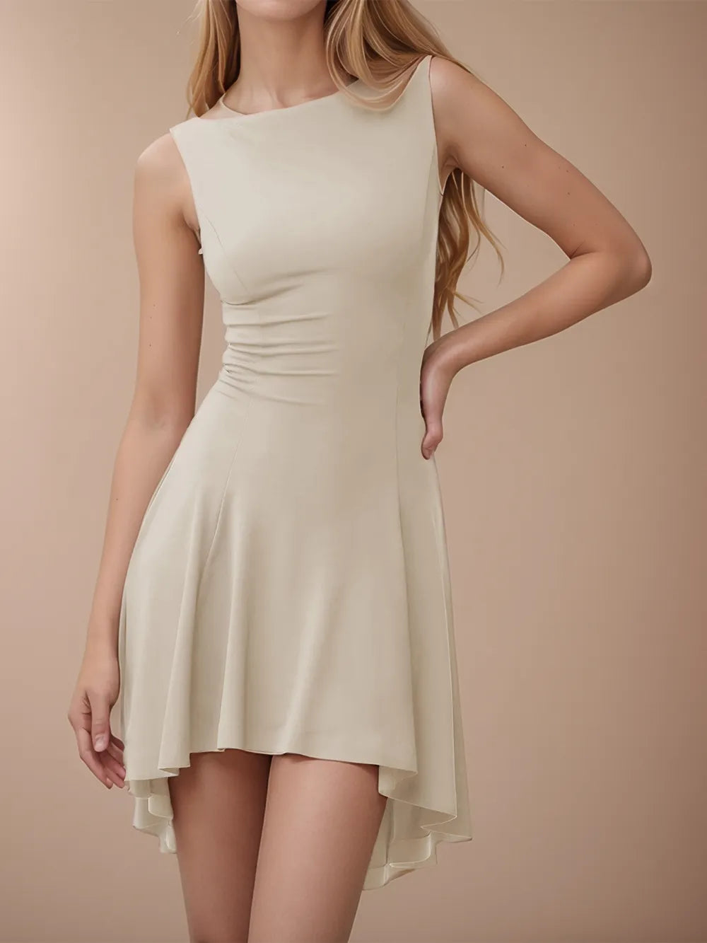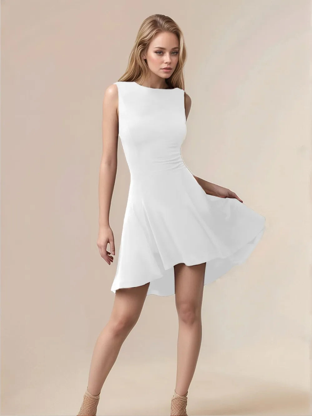 High-Low Round Neck Sleeveless Mini Dress