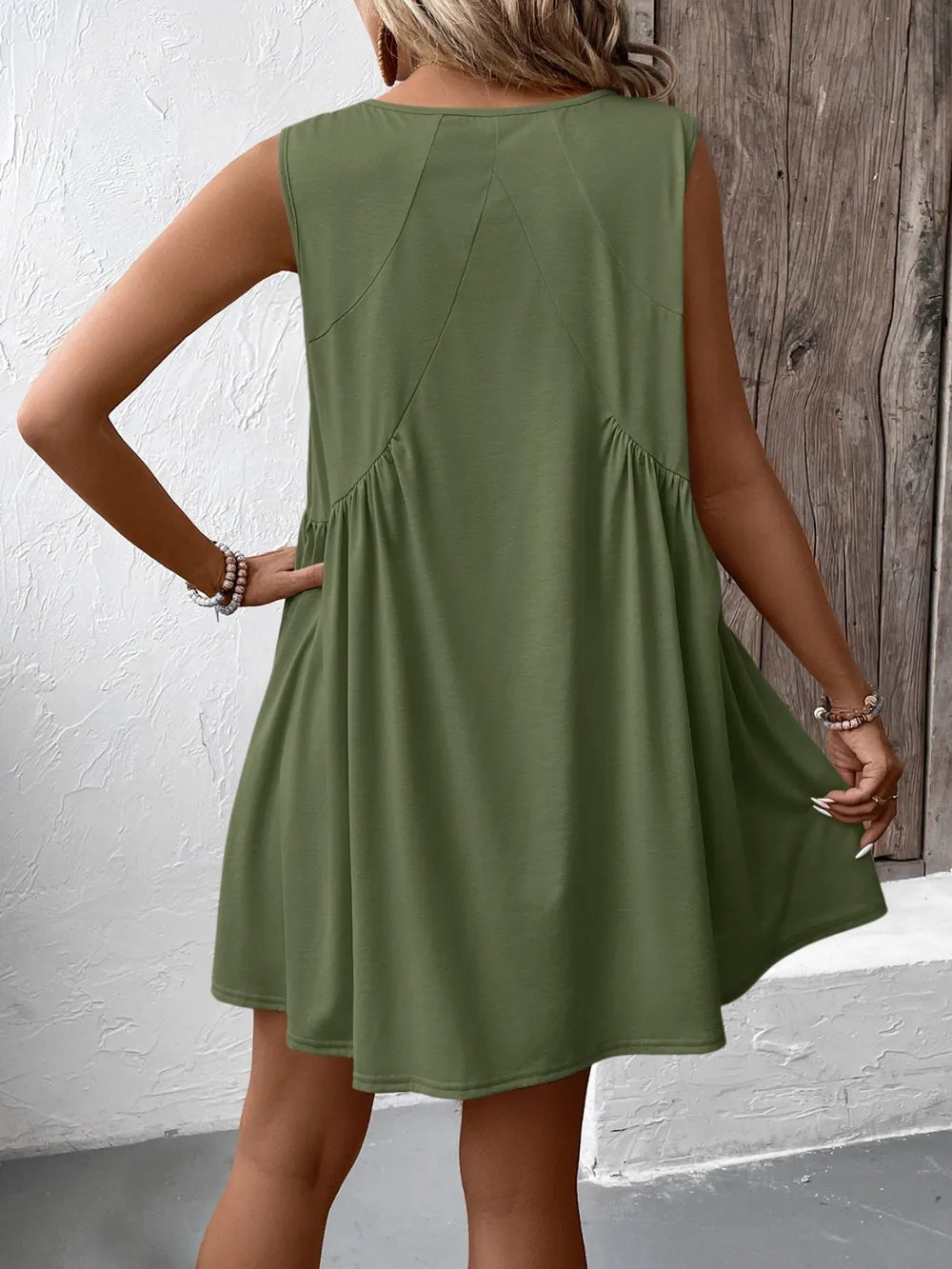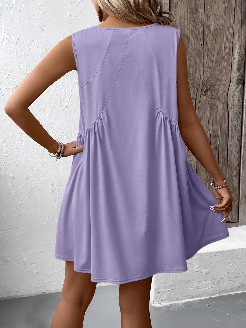 Ivy Lane Ruched V-Neck Sleeveless Mini Dress