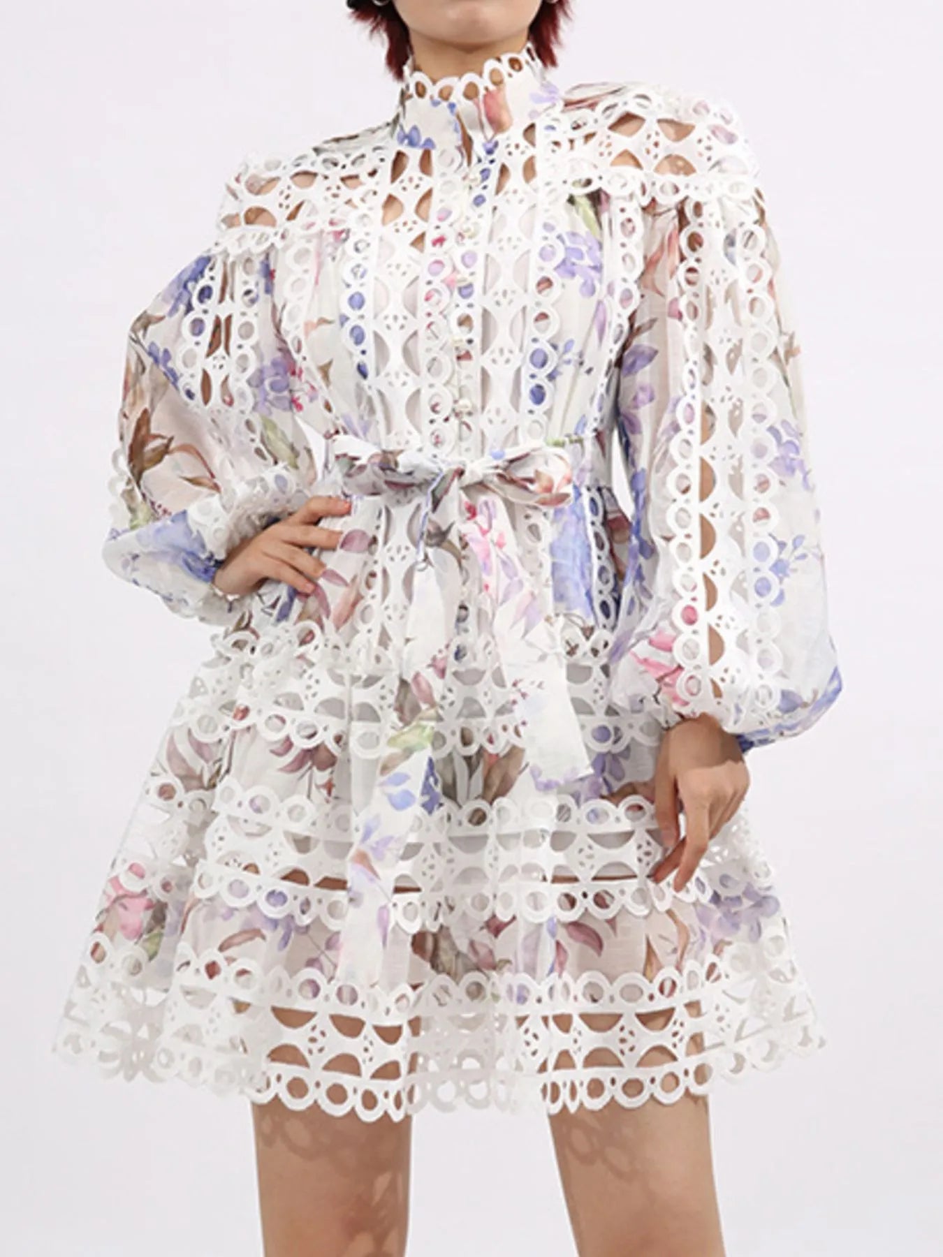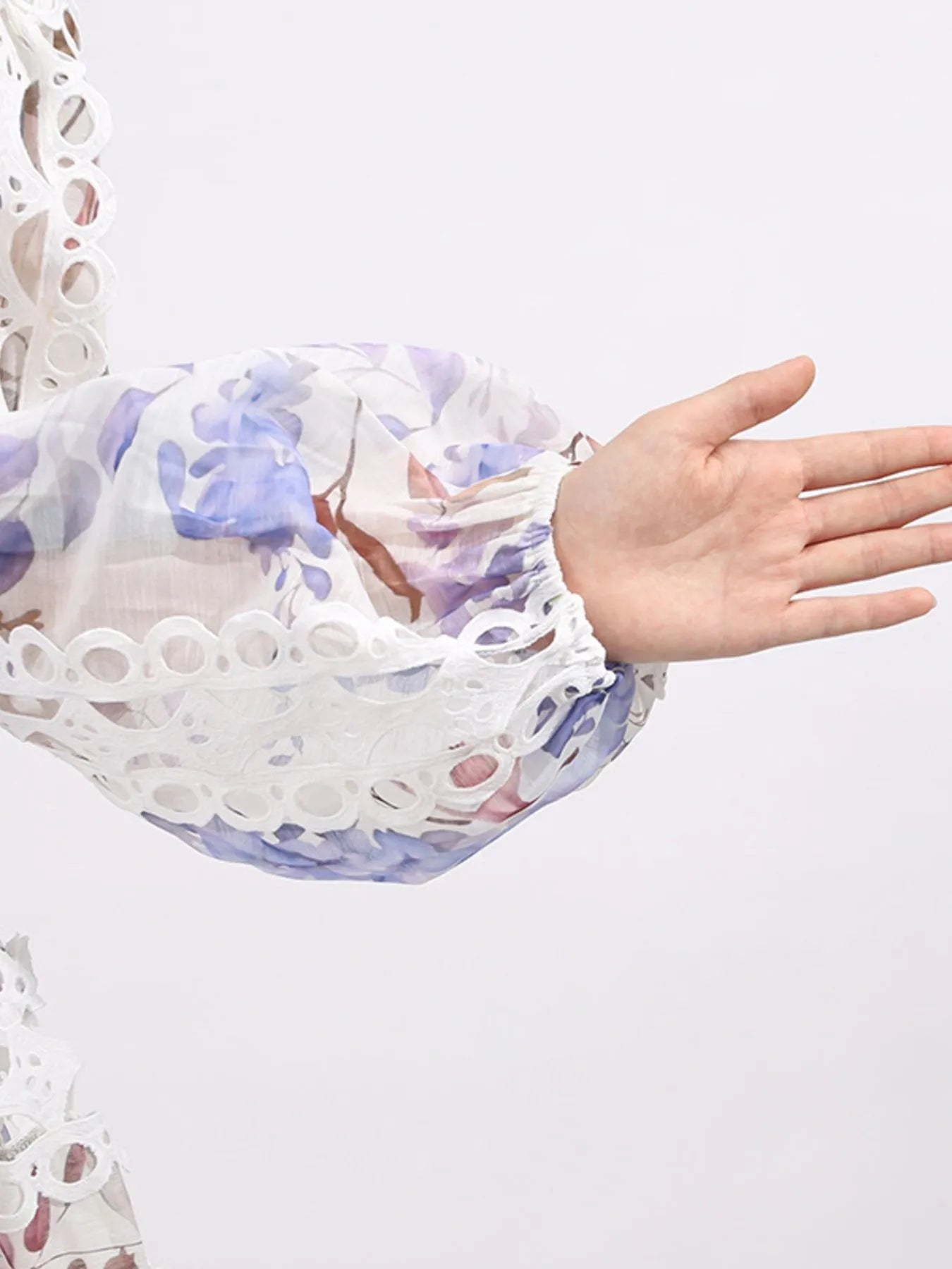 Lace Eyelet Mini Dress with Balloon Sleeves
