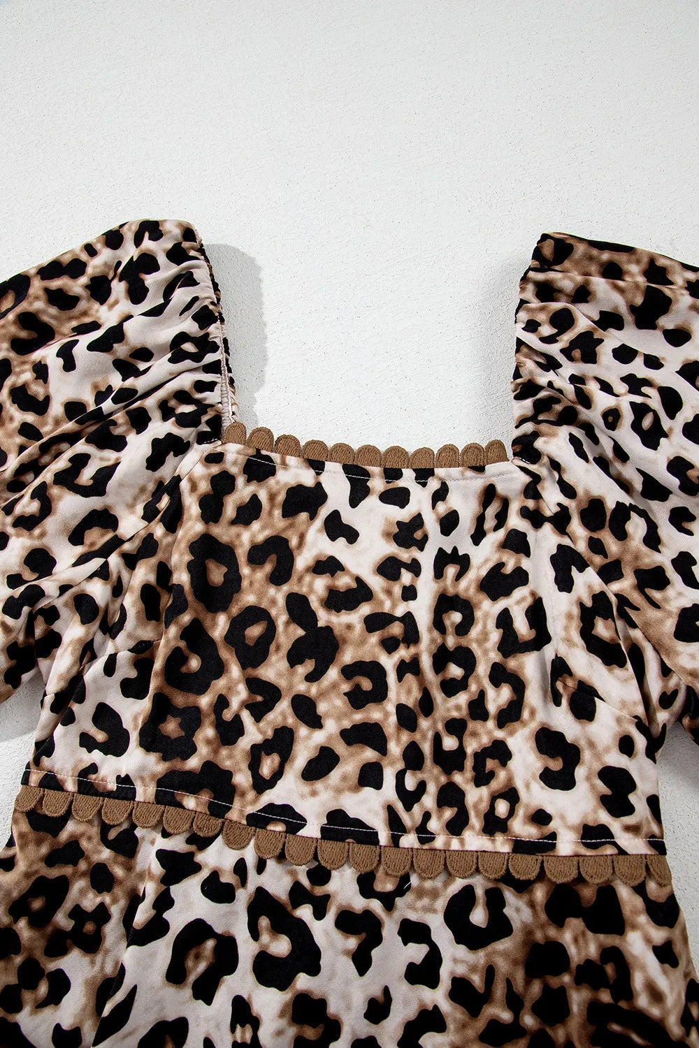 Leopard Square Neck Puff Sleeve Maxi Dress