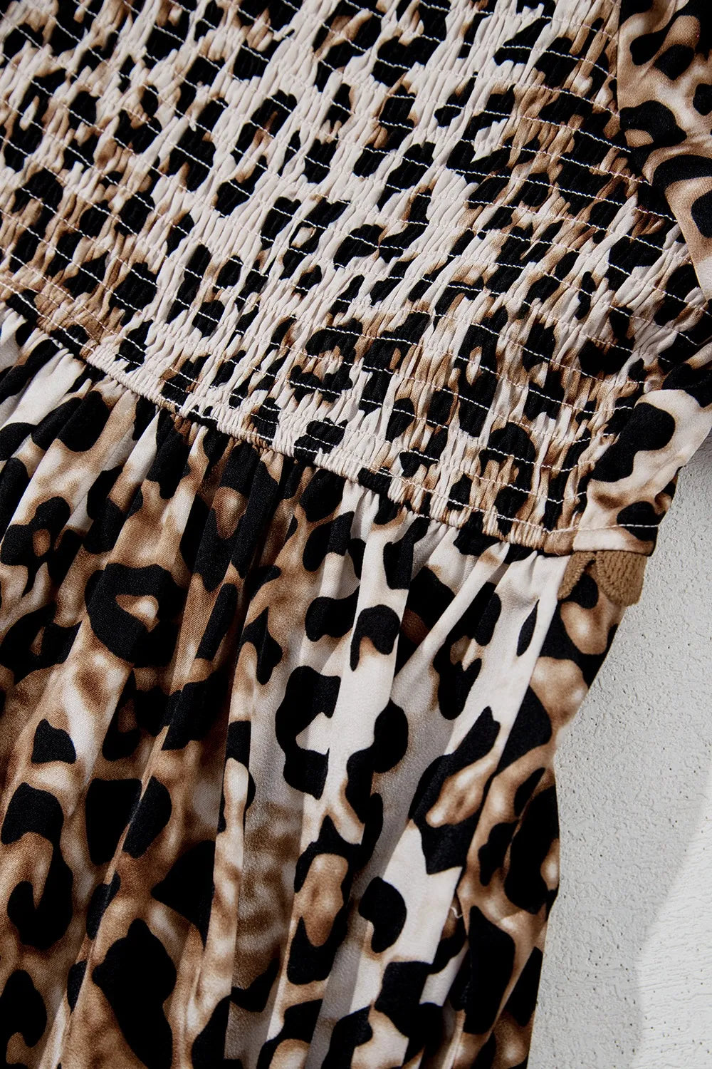 Velste Leopard Square Neck Puff Sleeve Maxi Dress