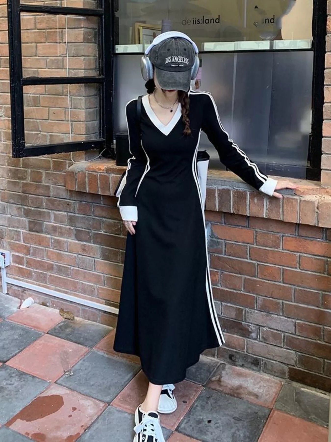 Plus Size V-Neck Long Sleeve Bodycon Midi Dress with Side Stripes
