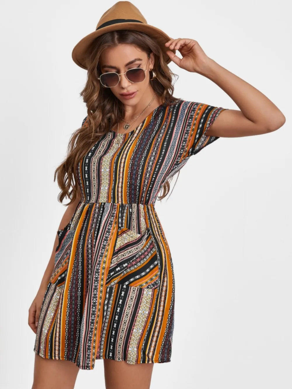 Pocketed Striped Short Sleeve Dress