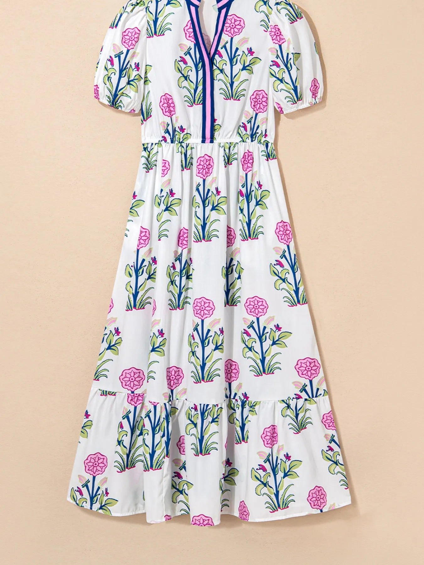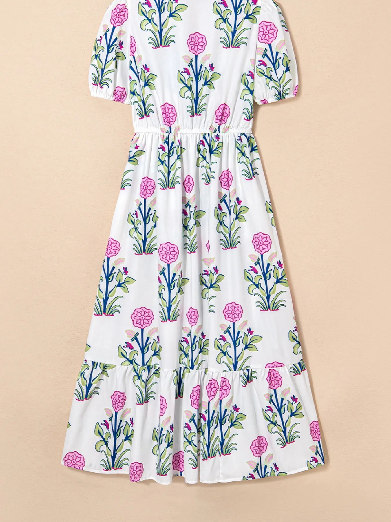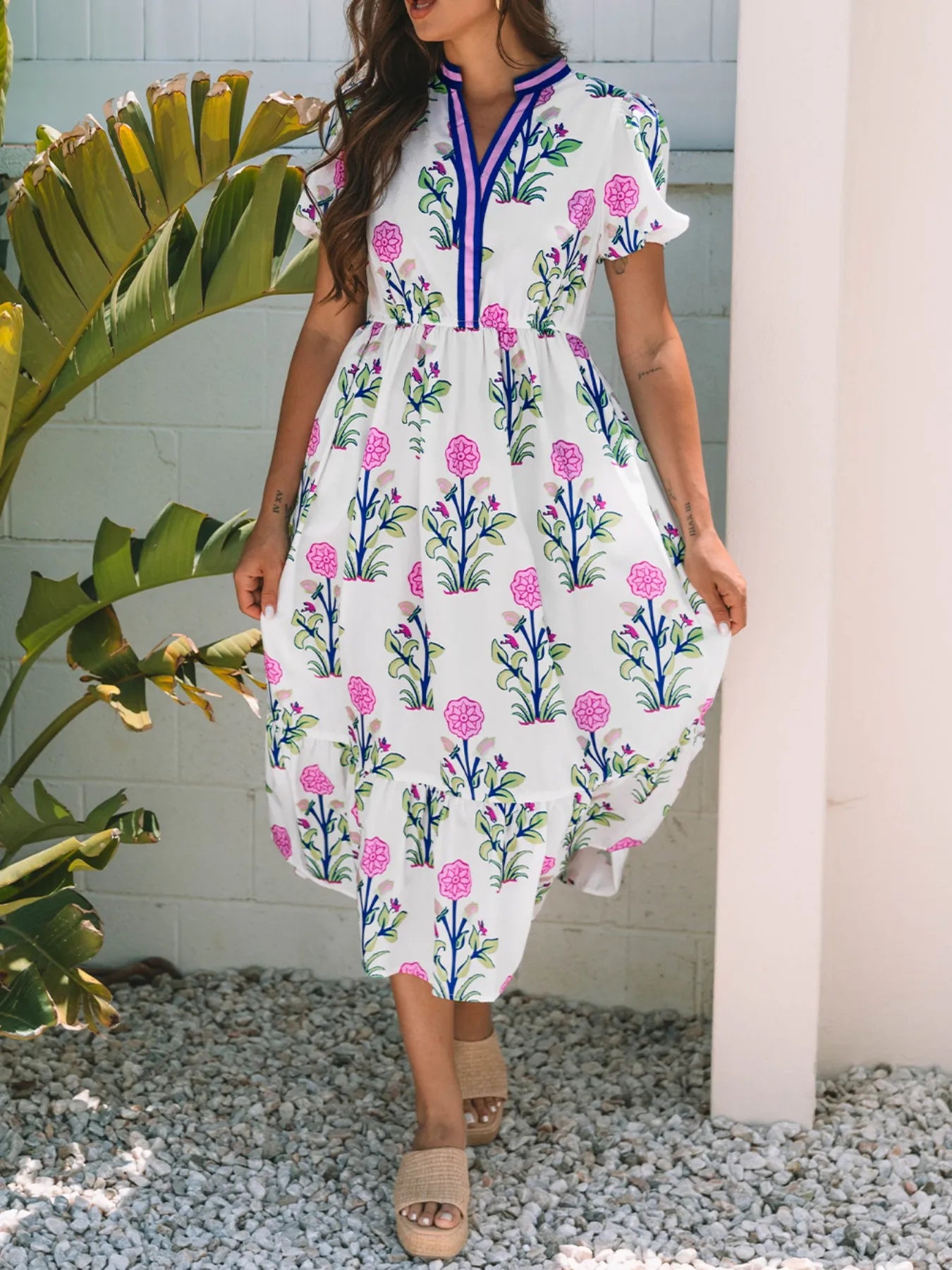 Velste Printed Short Sleeve Midi Dress with Pockets