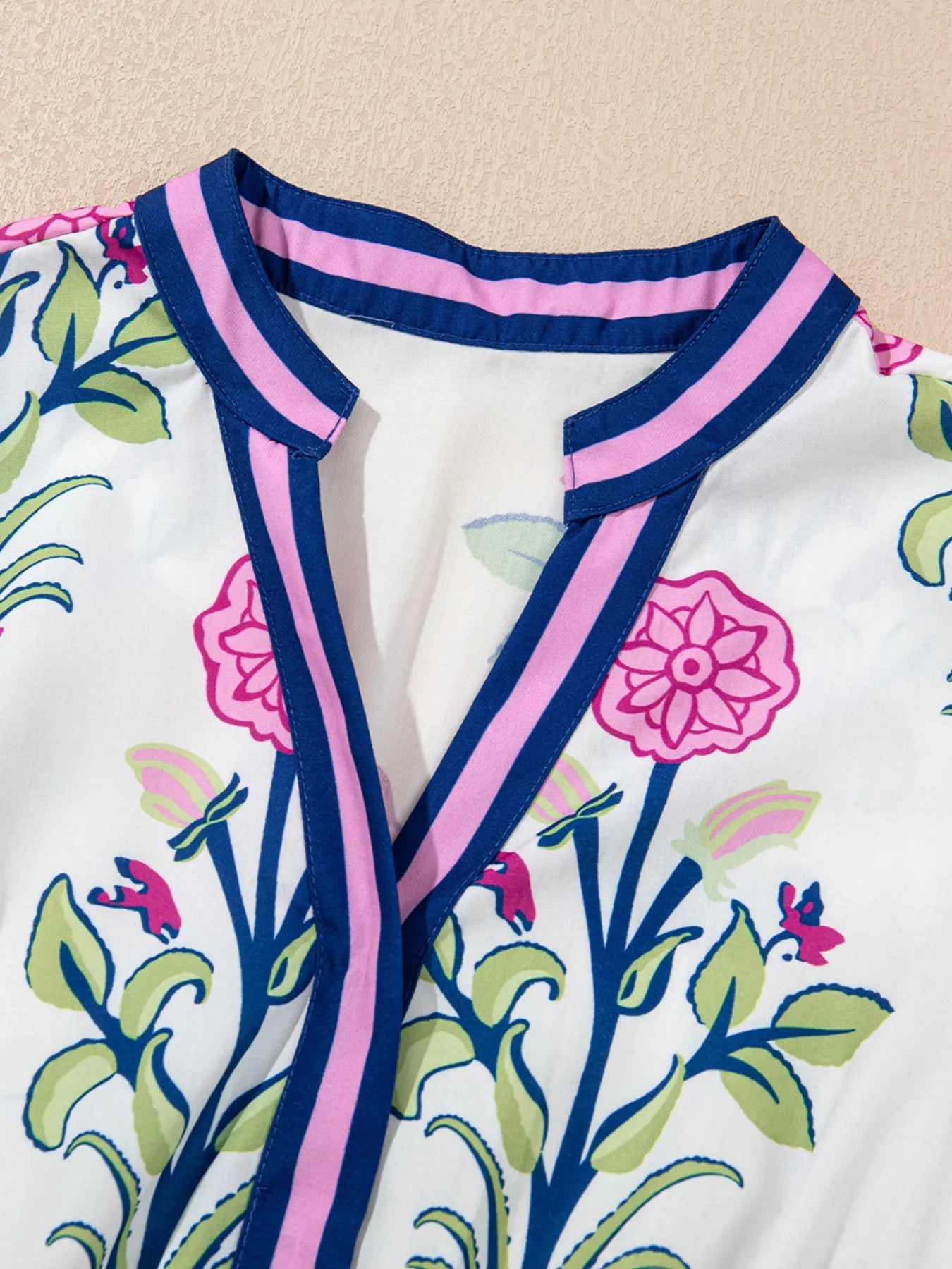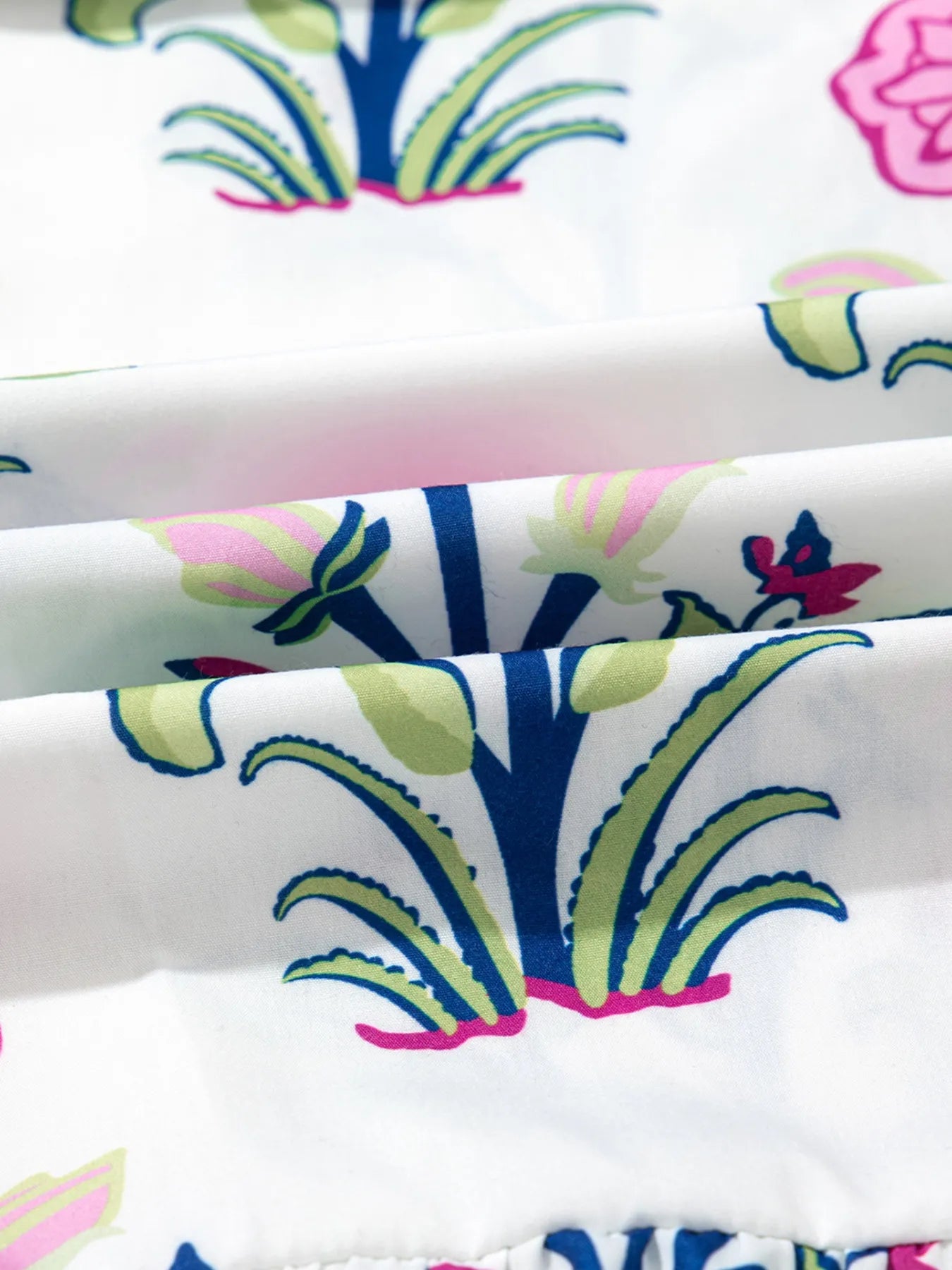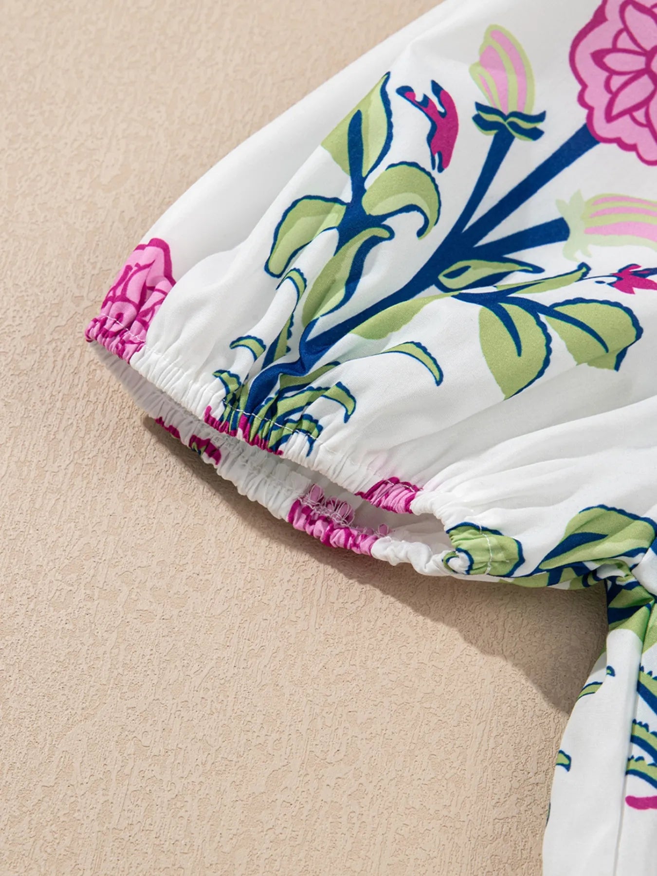 Velste Printed Short Sleeve Midi Dress with Pockets