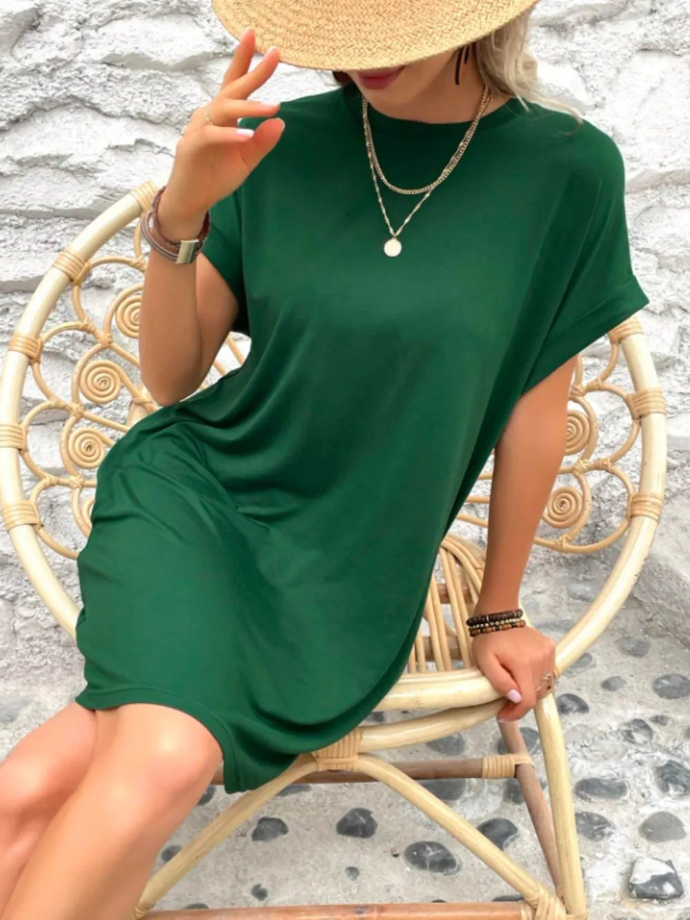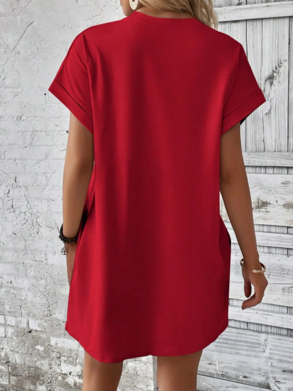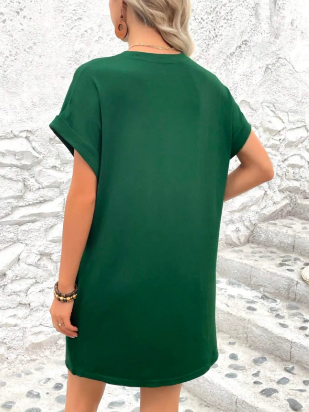 Round Neck Short Sleeve Mini Tee Dress with Pockets