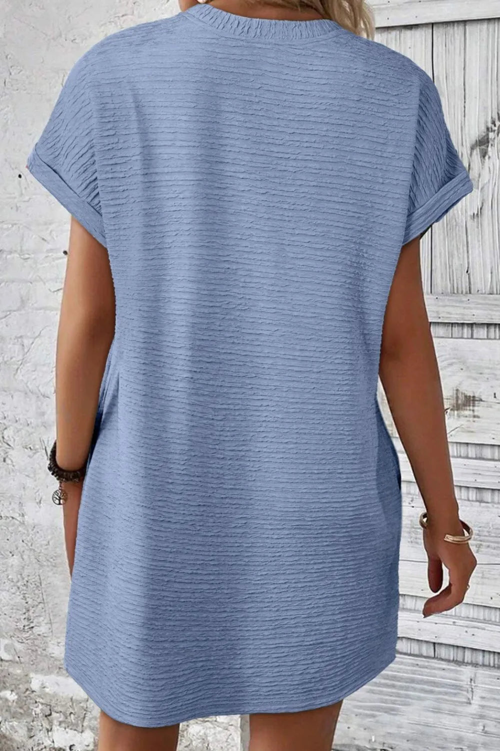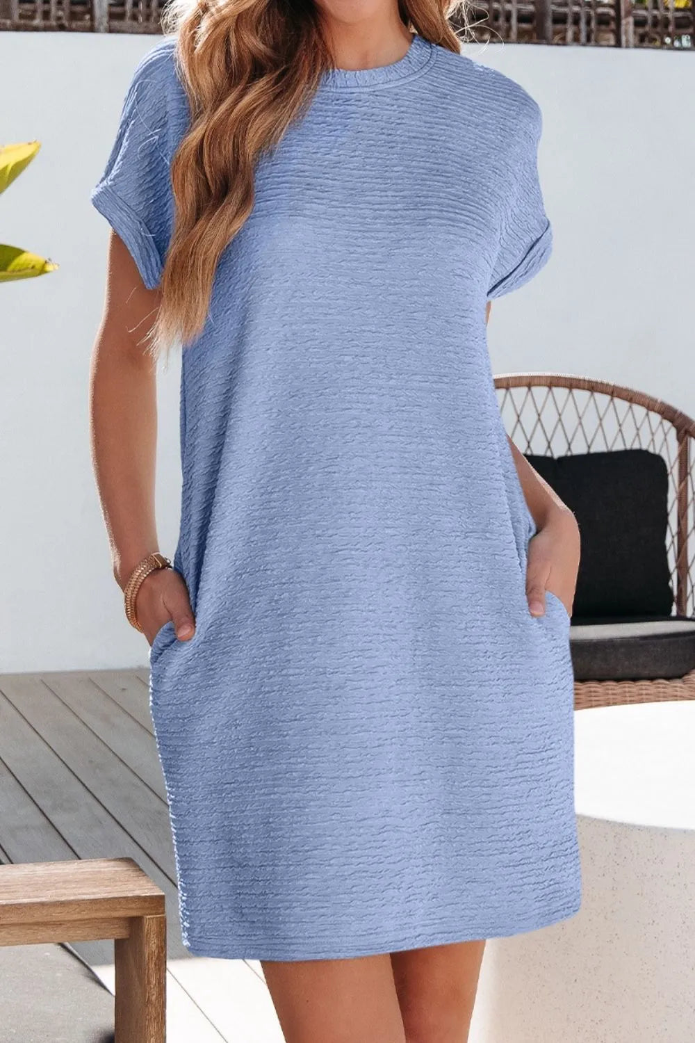 Solid Color Textured Crinkle Short Sleeve T Shirt Dress