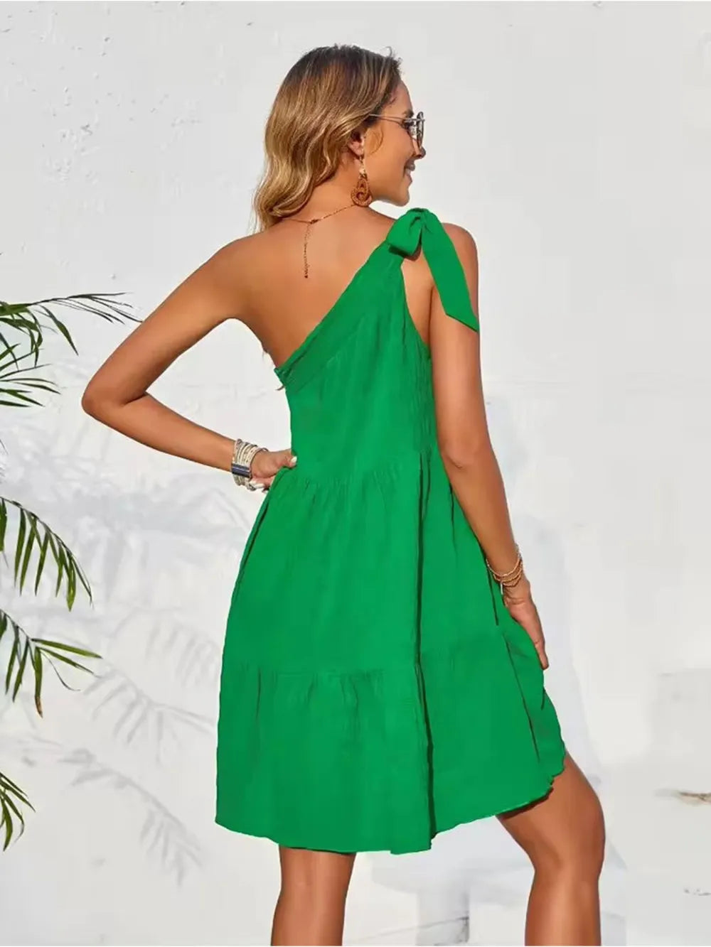 Velste Textured Tied Single Shoulder Mini Dress