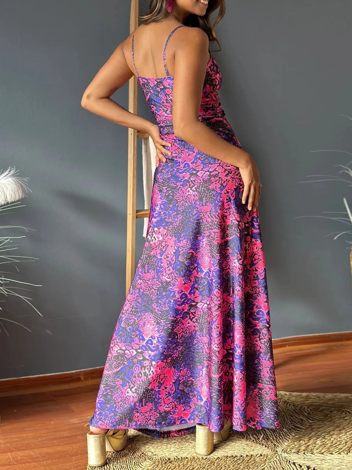 Velste Tropical Print V-Neck Maxi Dress