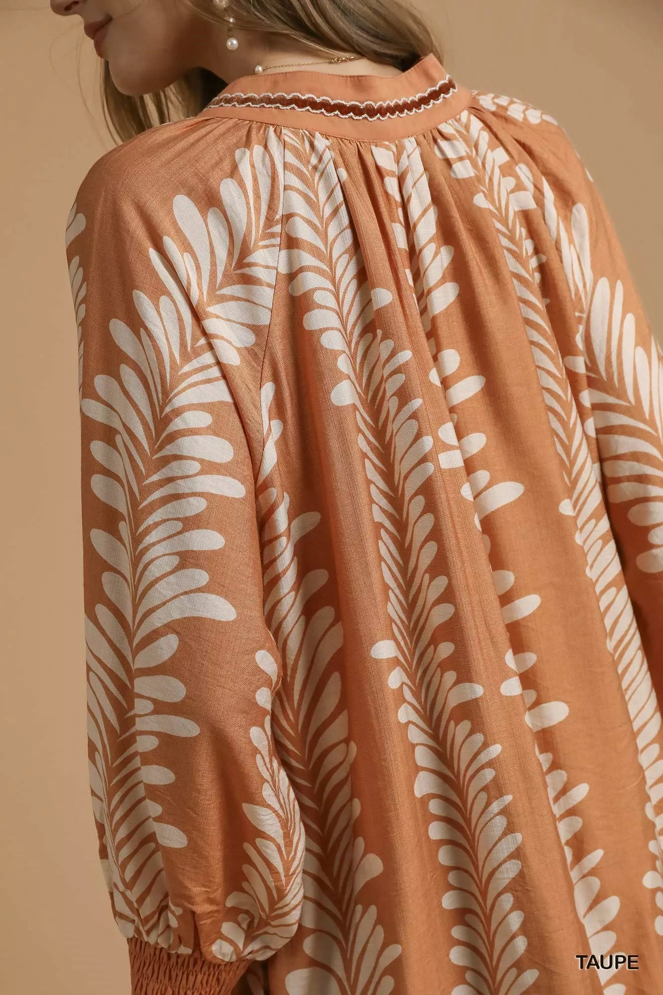 Velste Umgee Leaf Print Notched Mini Babydoll Dress