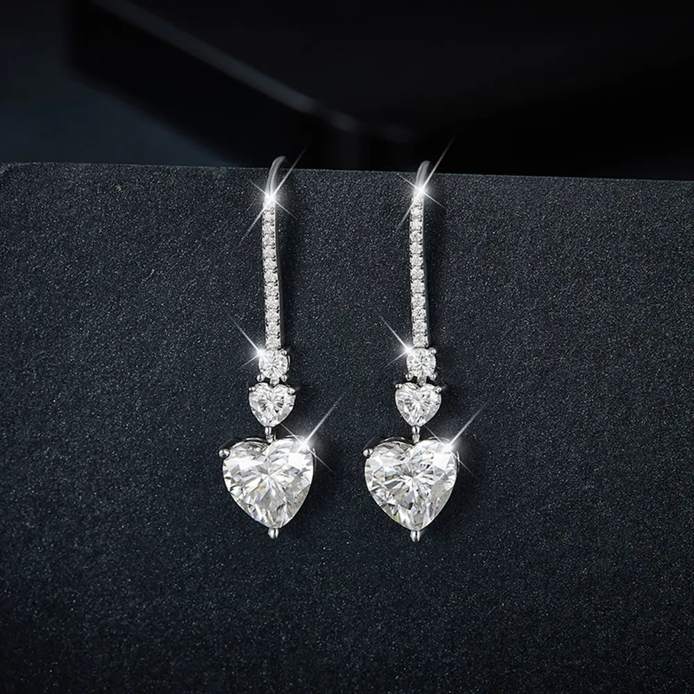 5.44 Carat 925 Sterling Silver Moissanite Heart Drop Earrings