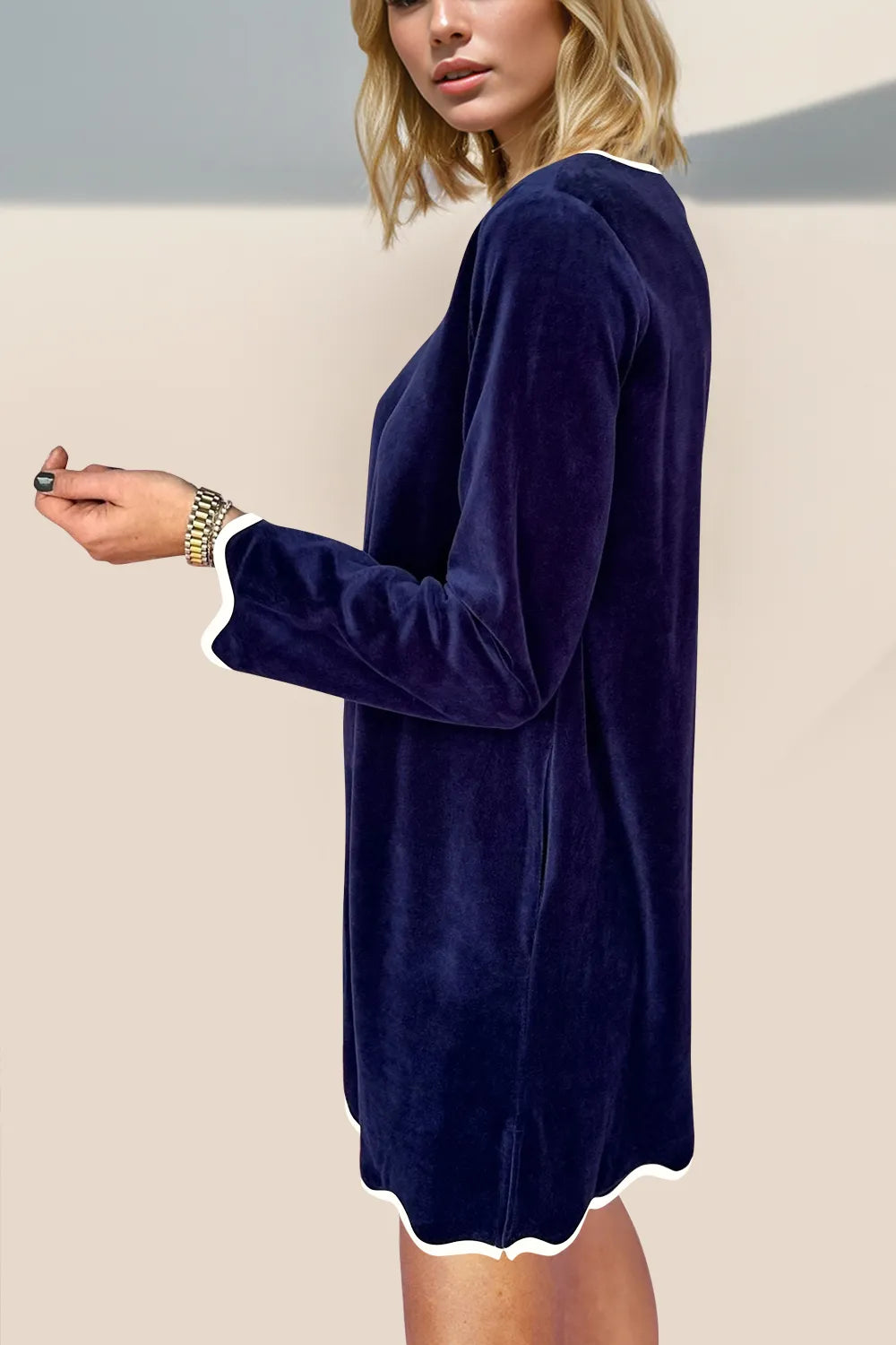 Velste Double Take Wave Contrast Trim V-Neck Zip Up Long Sleeve Mini Dress