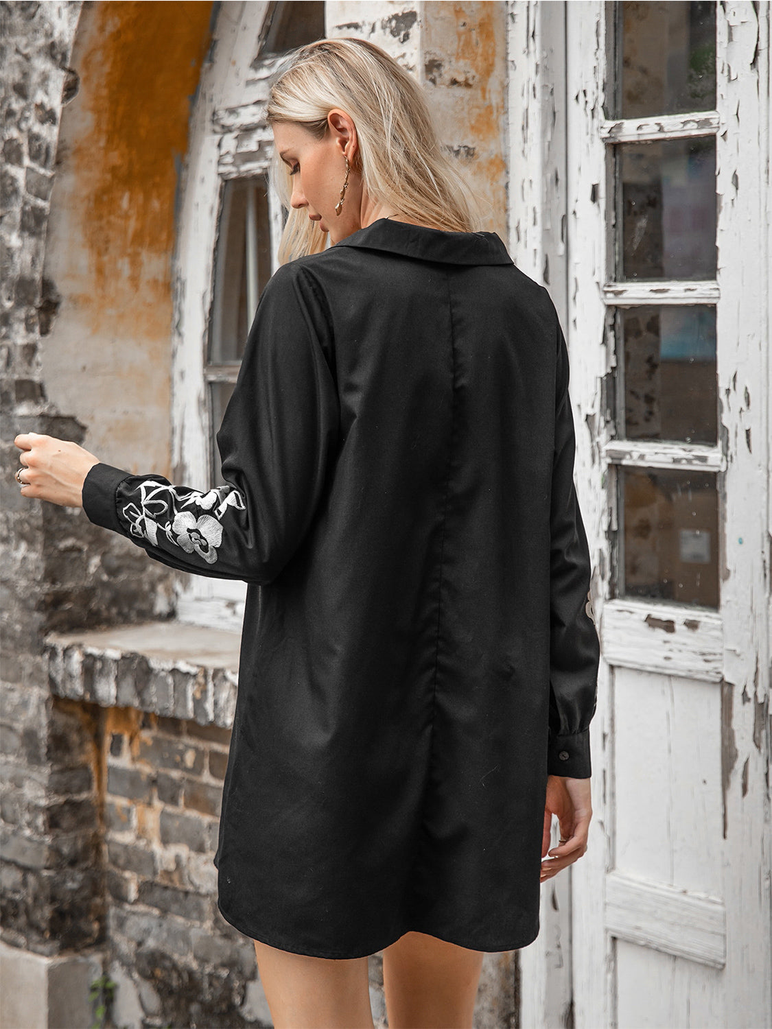 Velste Floral Collared Neck Long Sleeve Dress