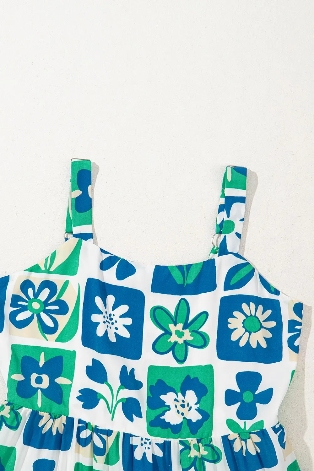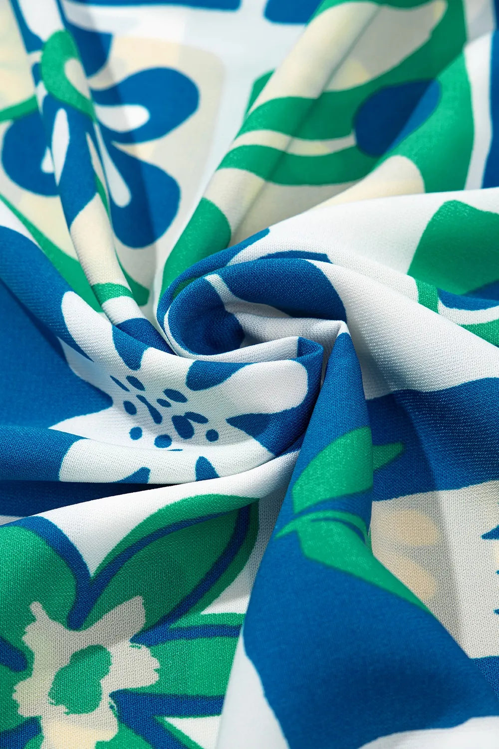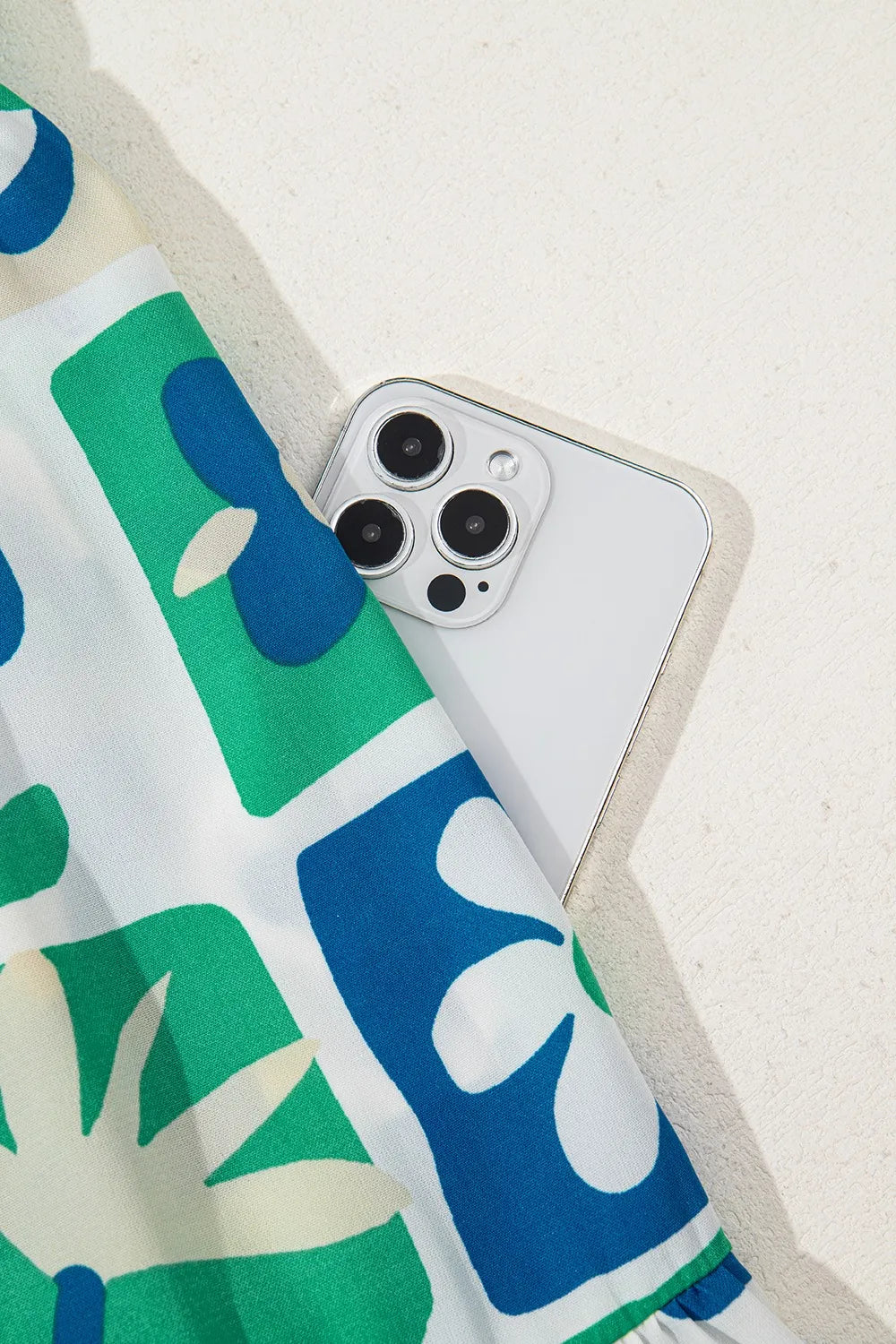 Velste Floral Mixed Pattern Ruffle Flutter Sleeve Buttoned Dress