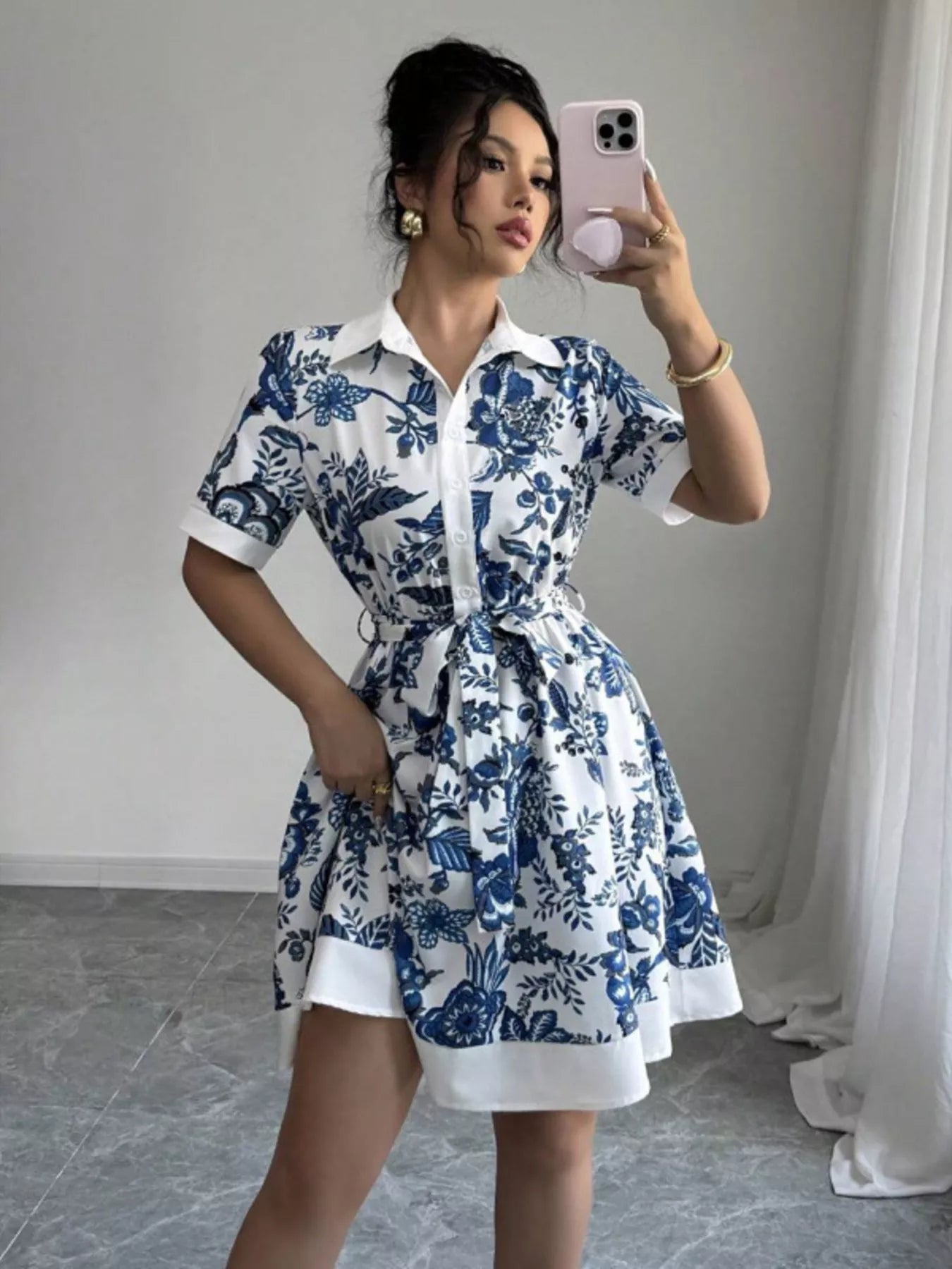 Floral Print Button-Front Shirt Dress