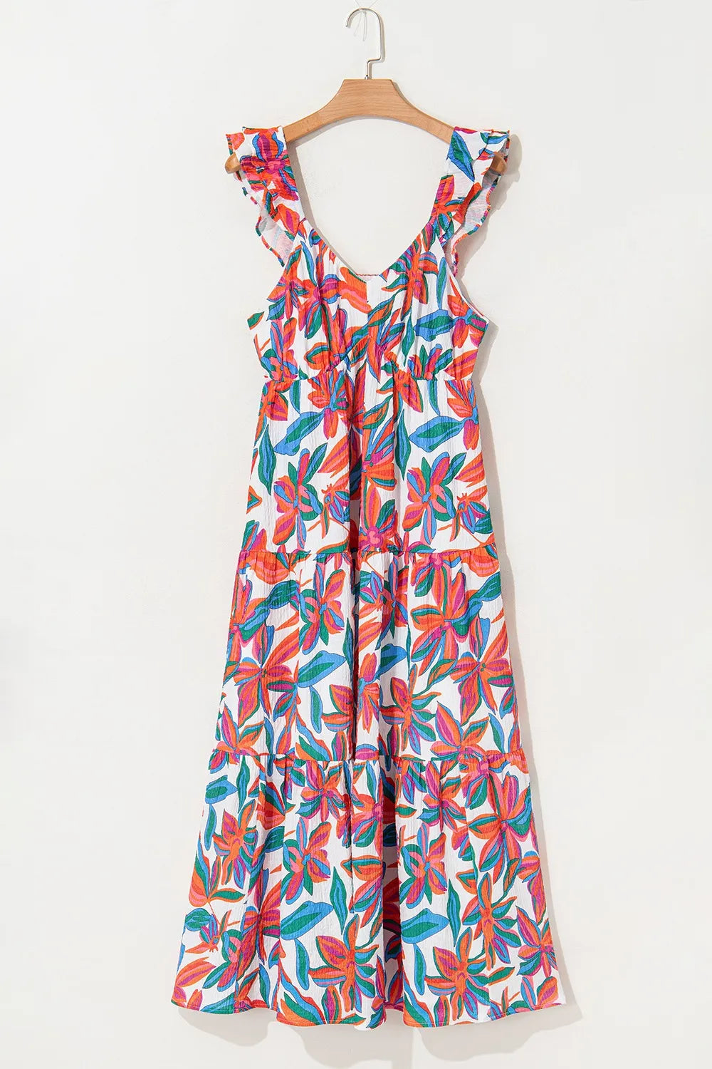 Floral Ruffled Strap V Neck Maxi Dress