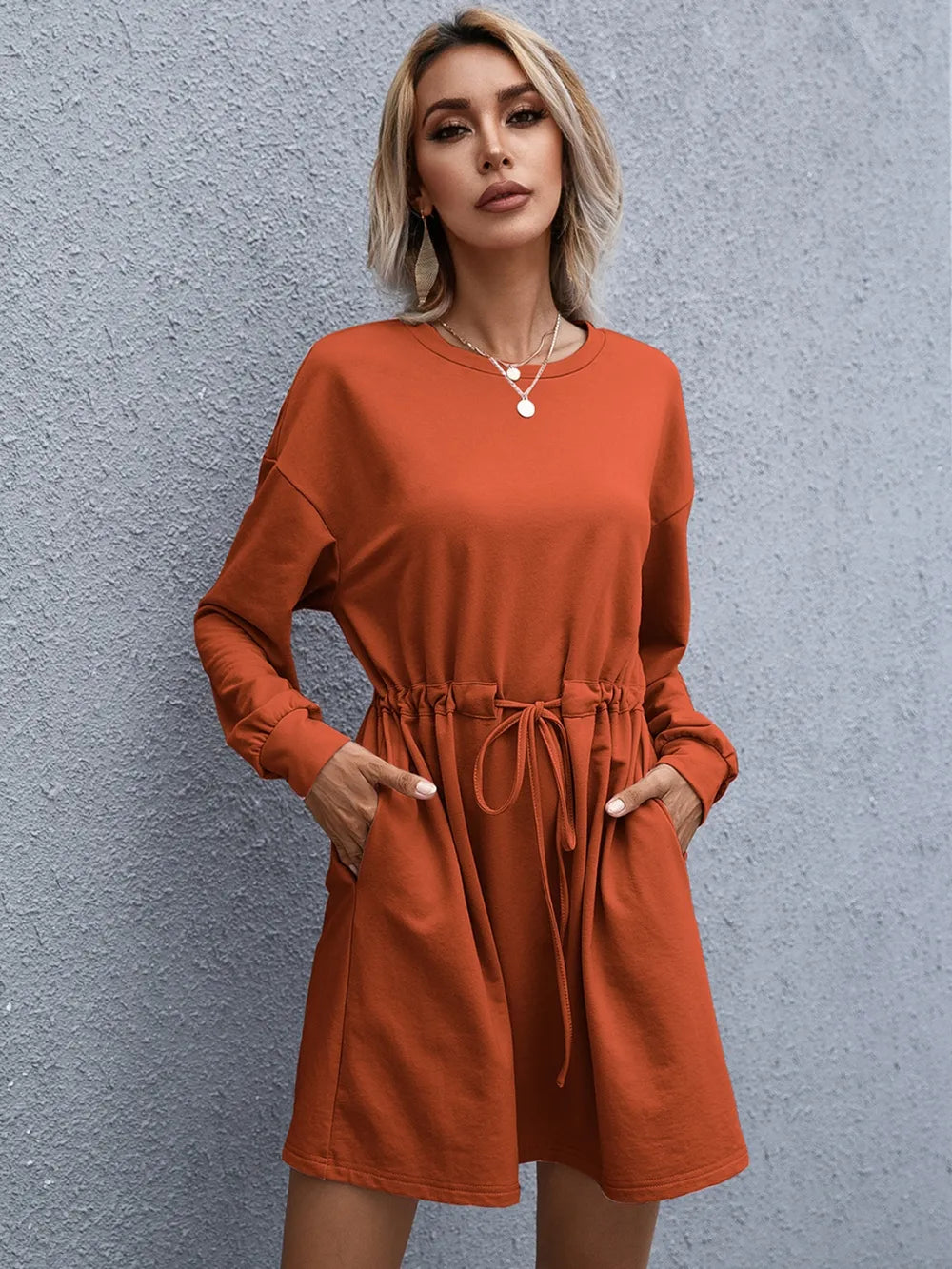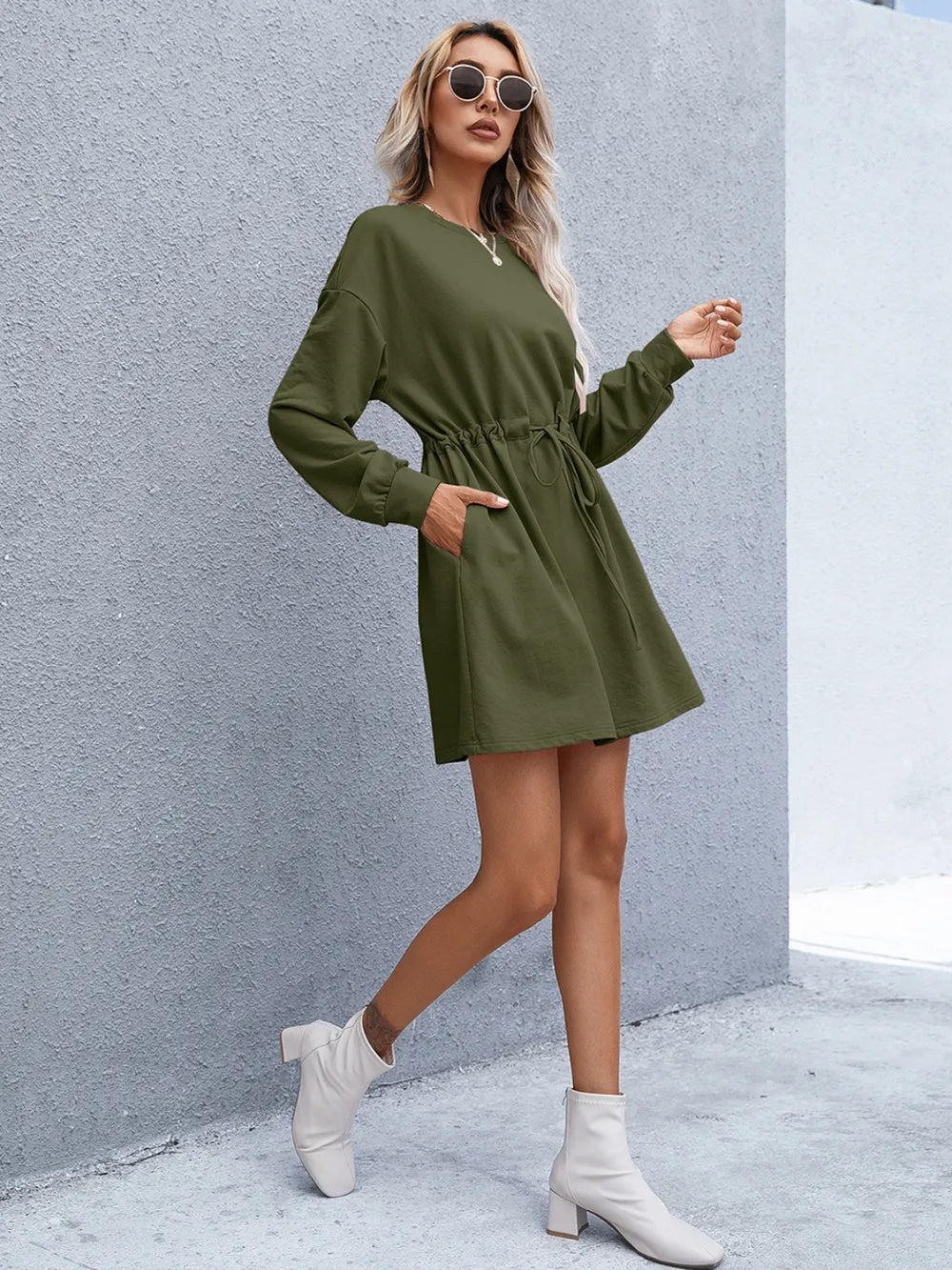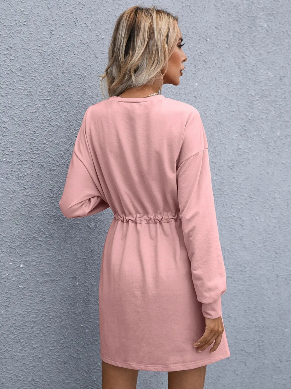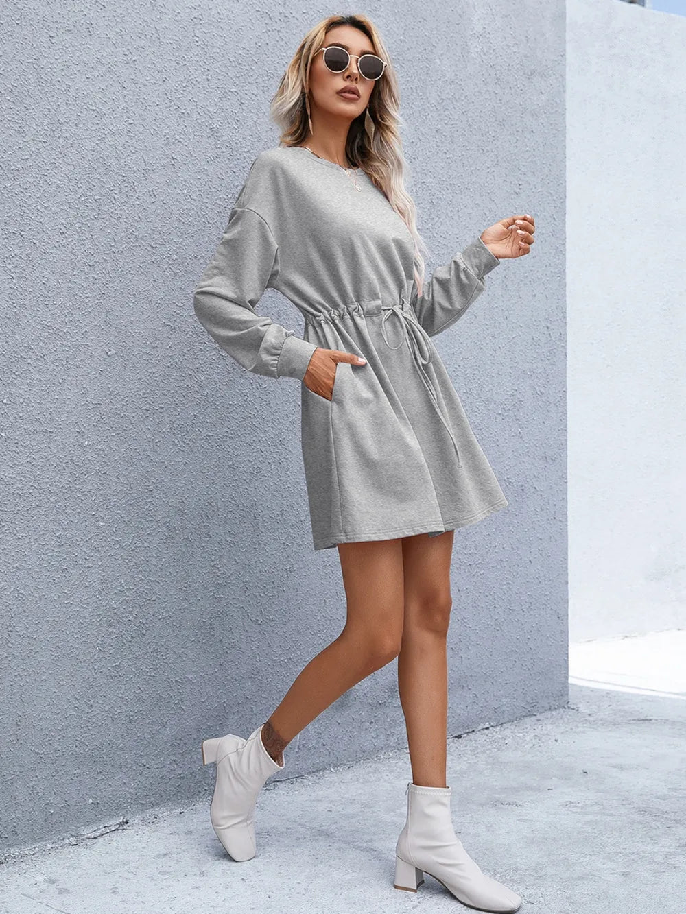 Velste Ivy Lane Drawstring Round Neck Dropped Shoulder Mini Dress