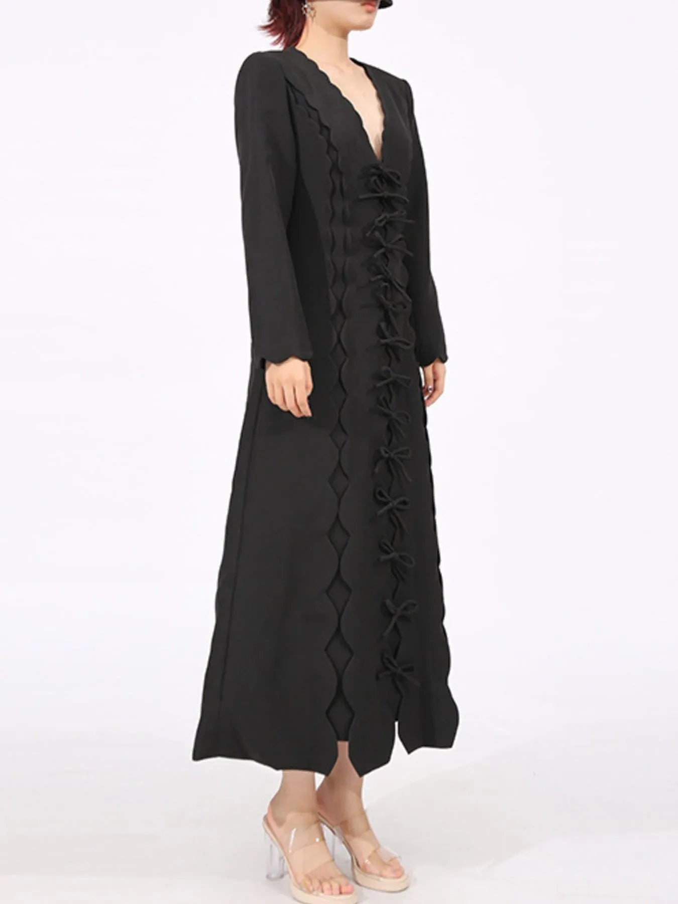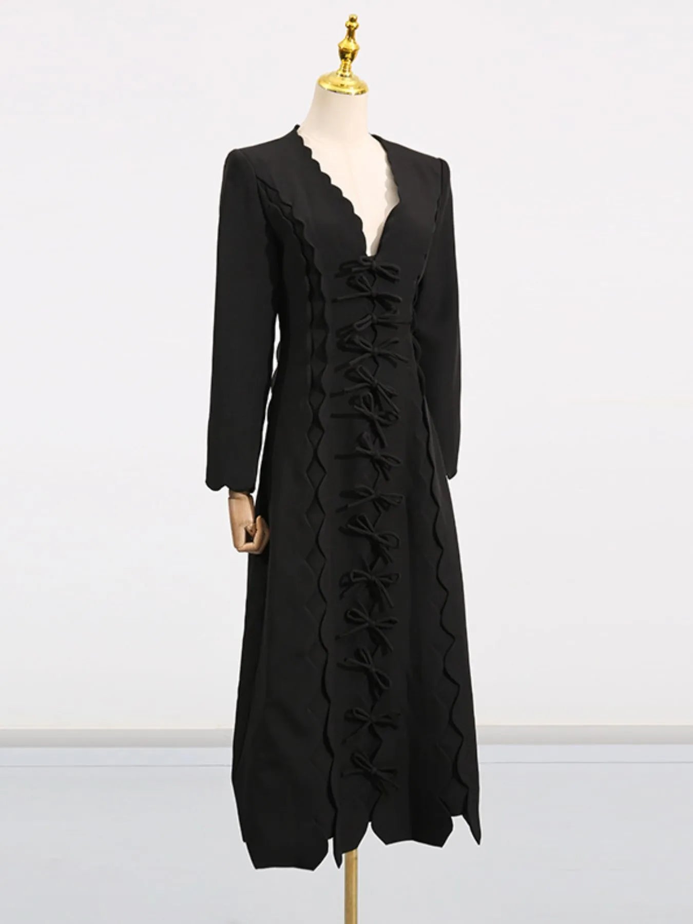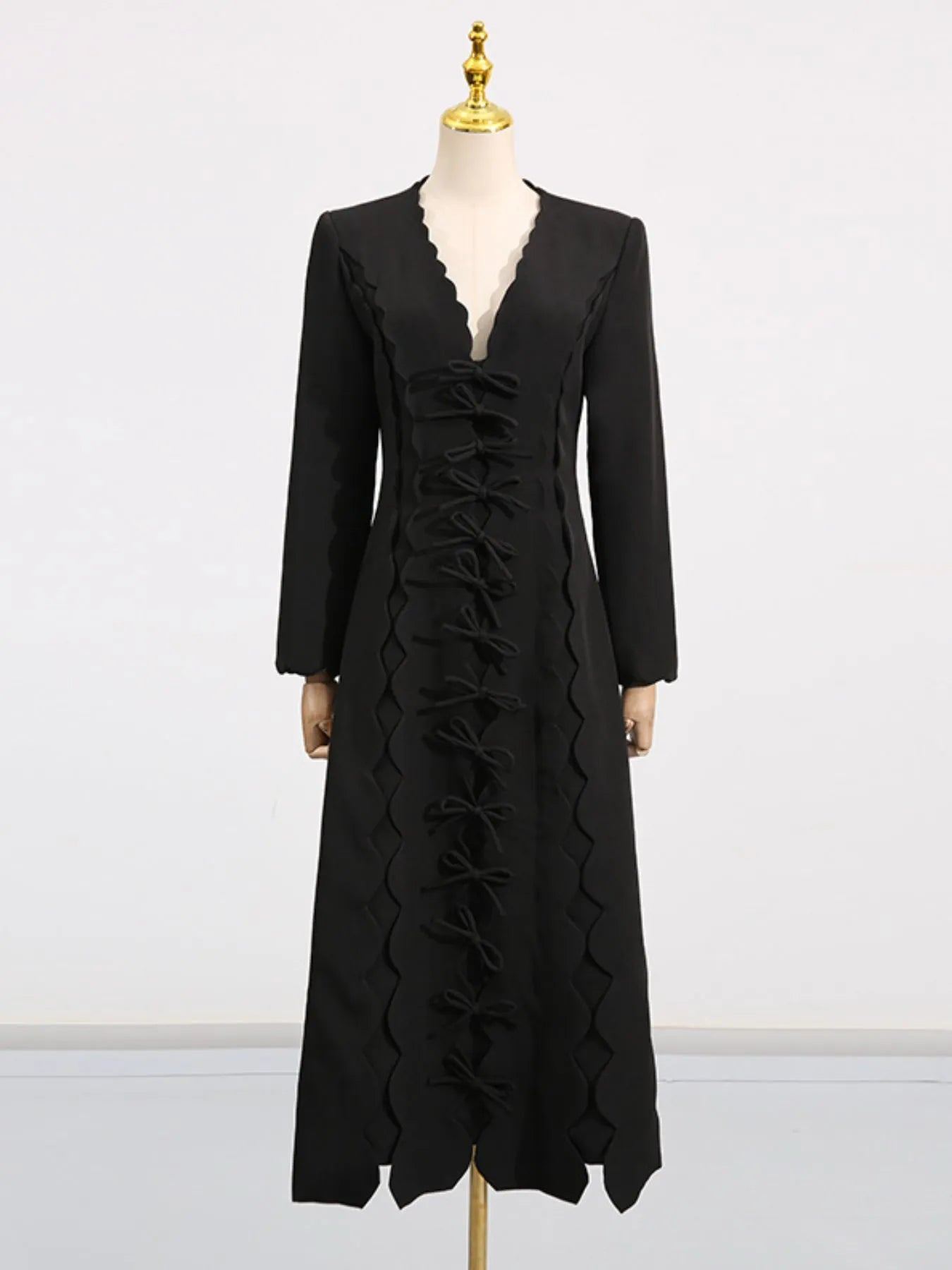 Long Sleeve Bow Front Midi Dress