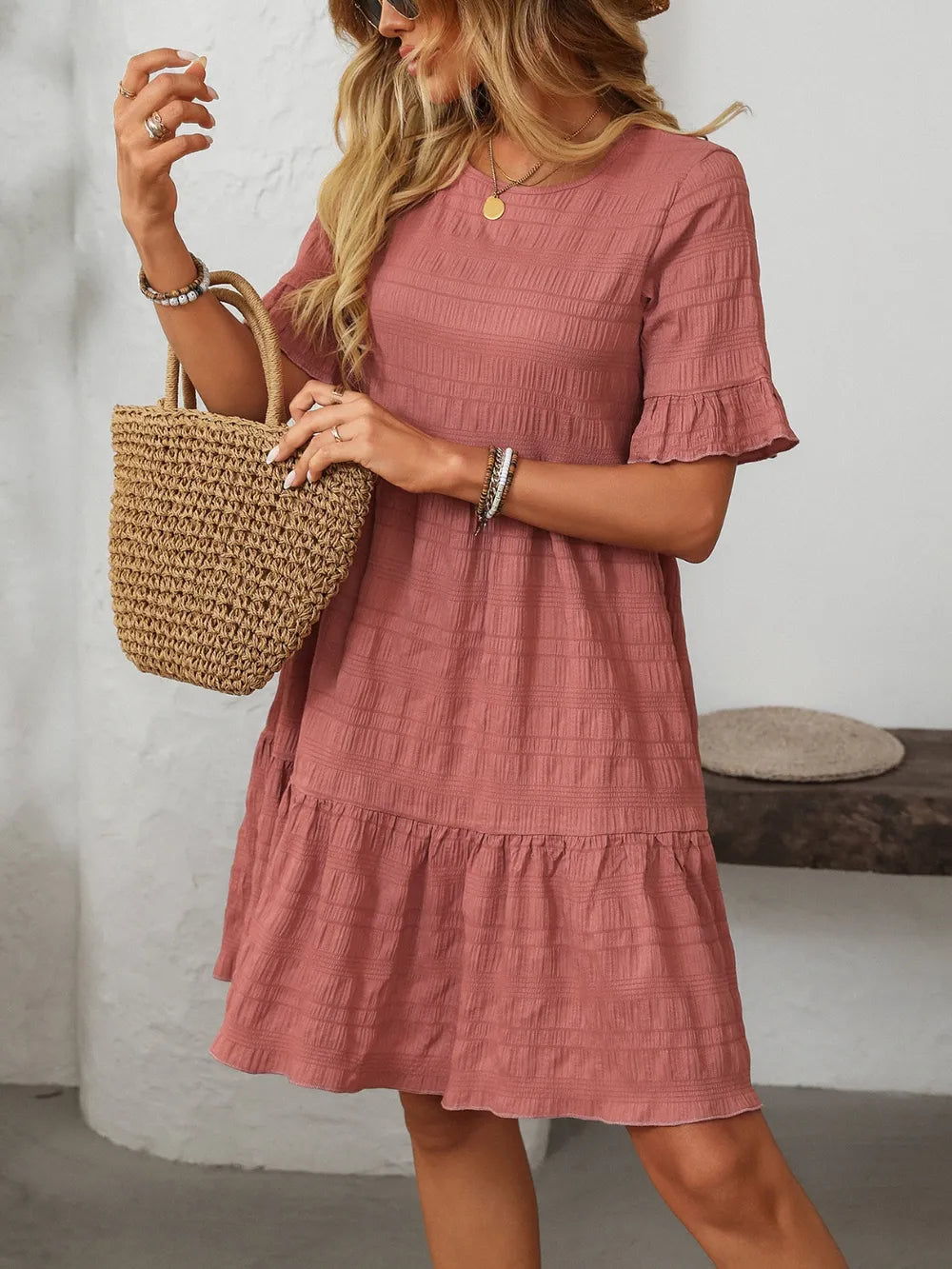 Mandy Ruffled Ruched Round Neck Half Sleeve Dress