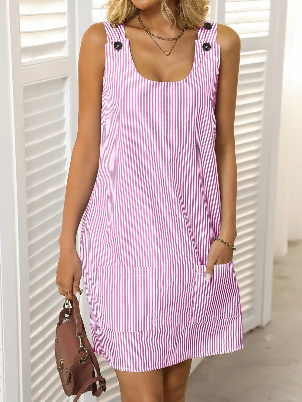 Mandy Striped Wide Strap Mini Dress