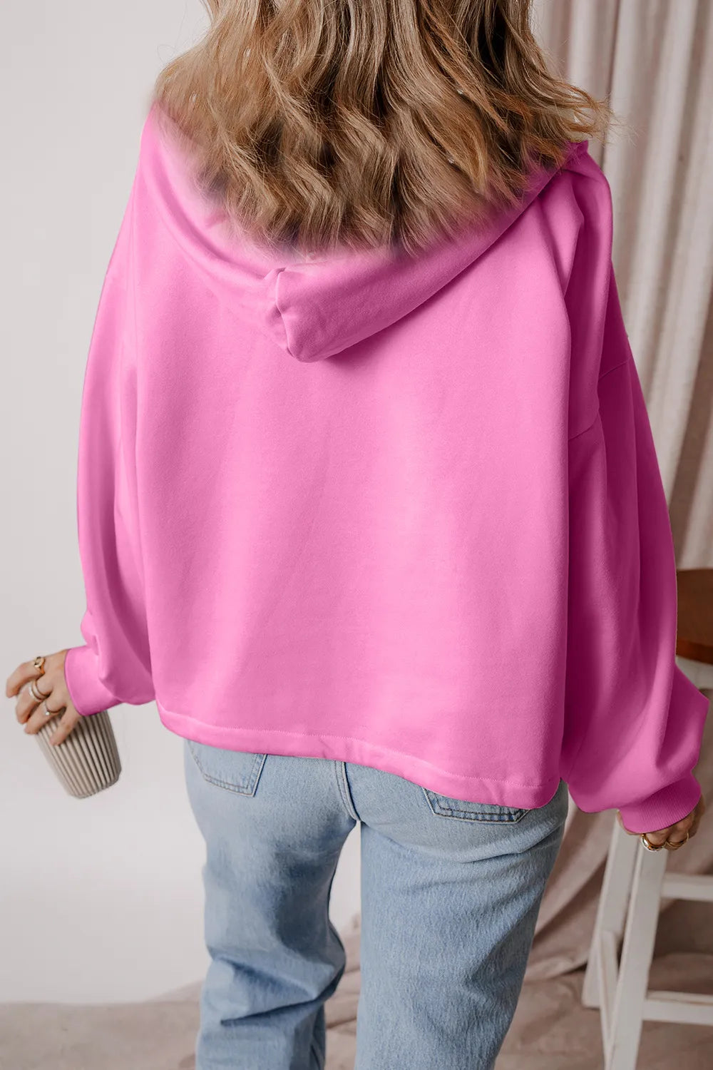 Pocketed Half Zip Dropped Shoulder Hoodie