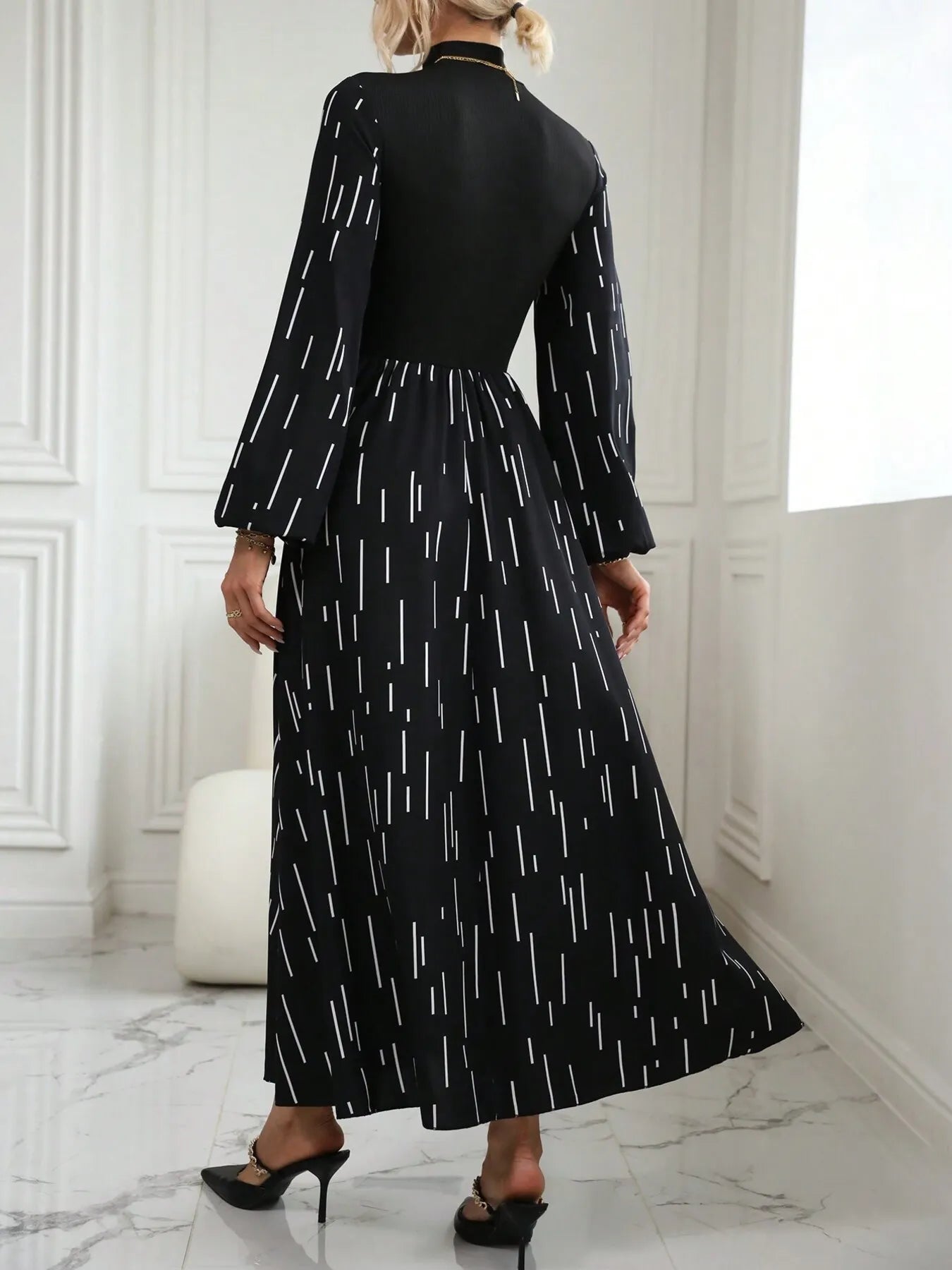 Velste Printed Long Sleeve Mock Neck Dress