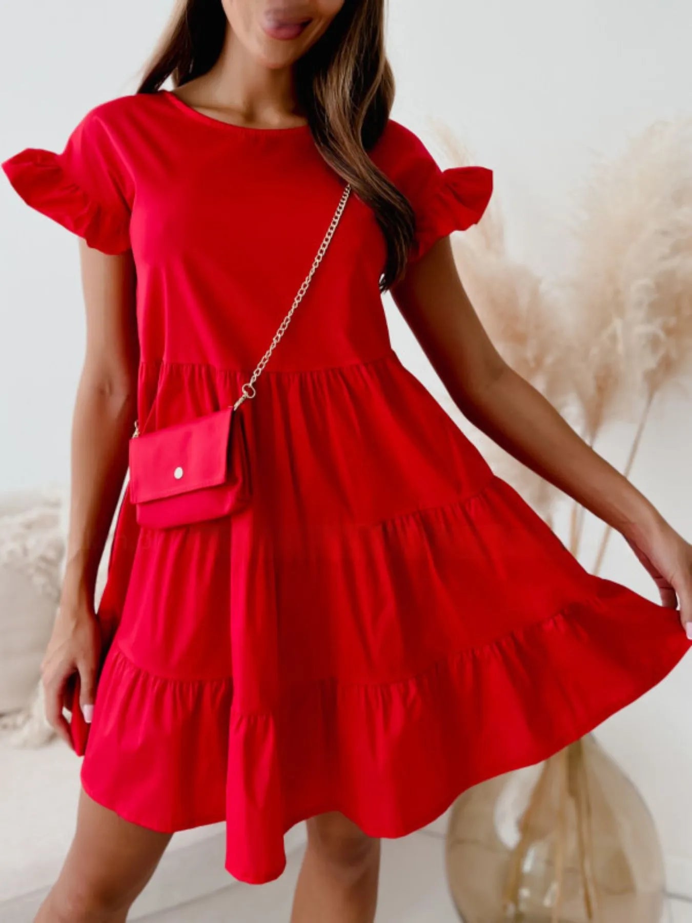 Ruffle Sleeve Tiered Swing Dress