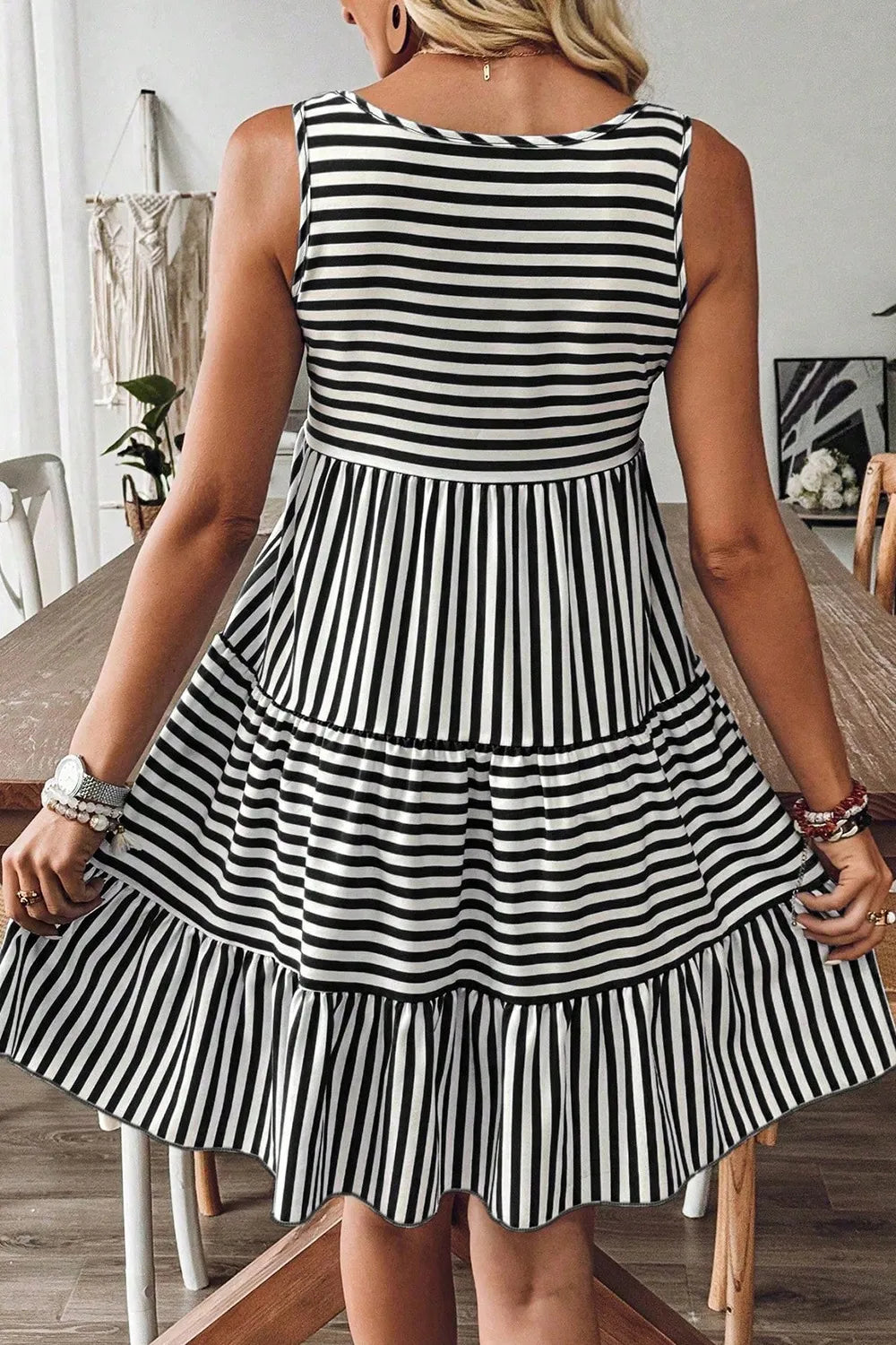 Velste Striped Round Neck Sleeveless Mini Dress
