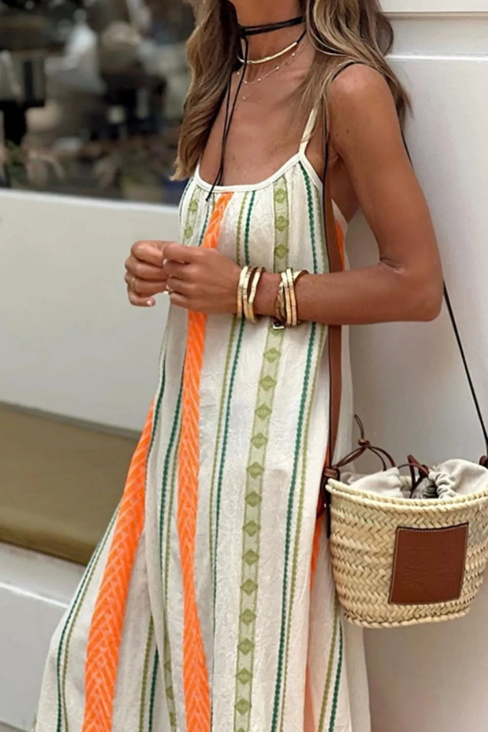 Velste Striped Ruffled Maxi Cami Dress