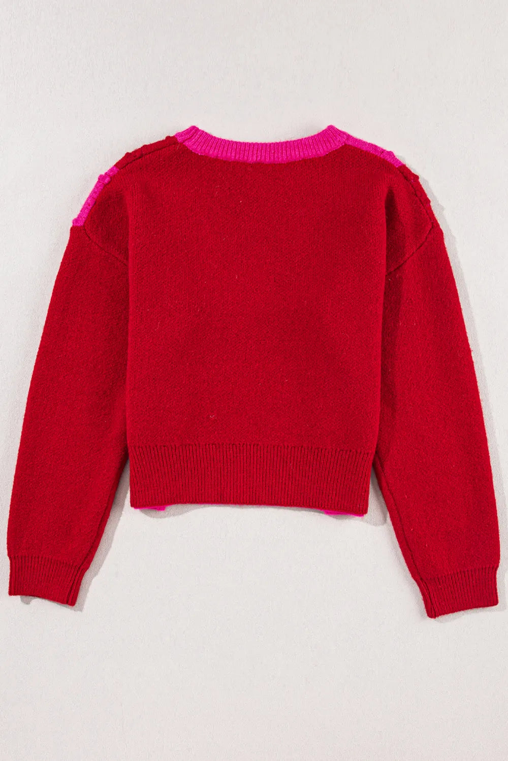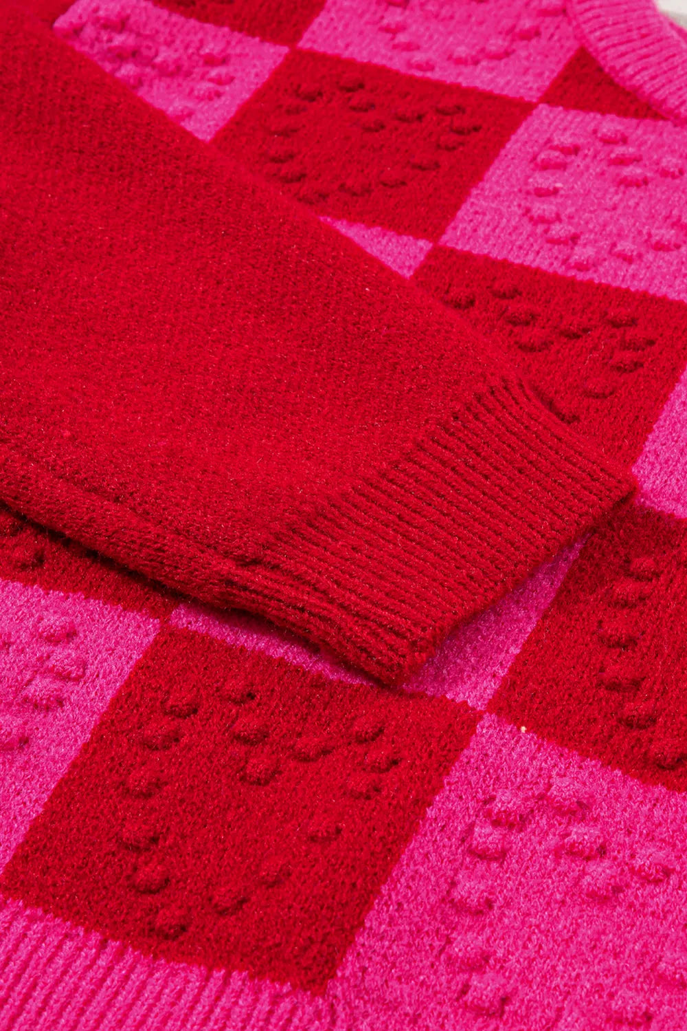 Velste Checkered Round Neck Dropped Shoulder Sweater