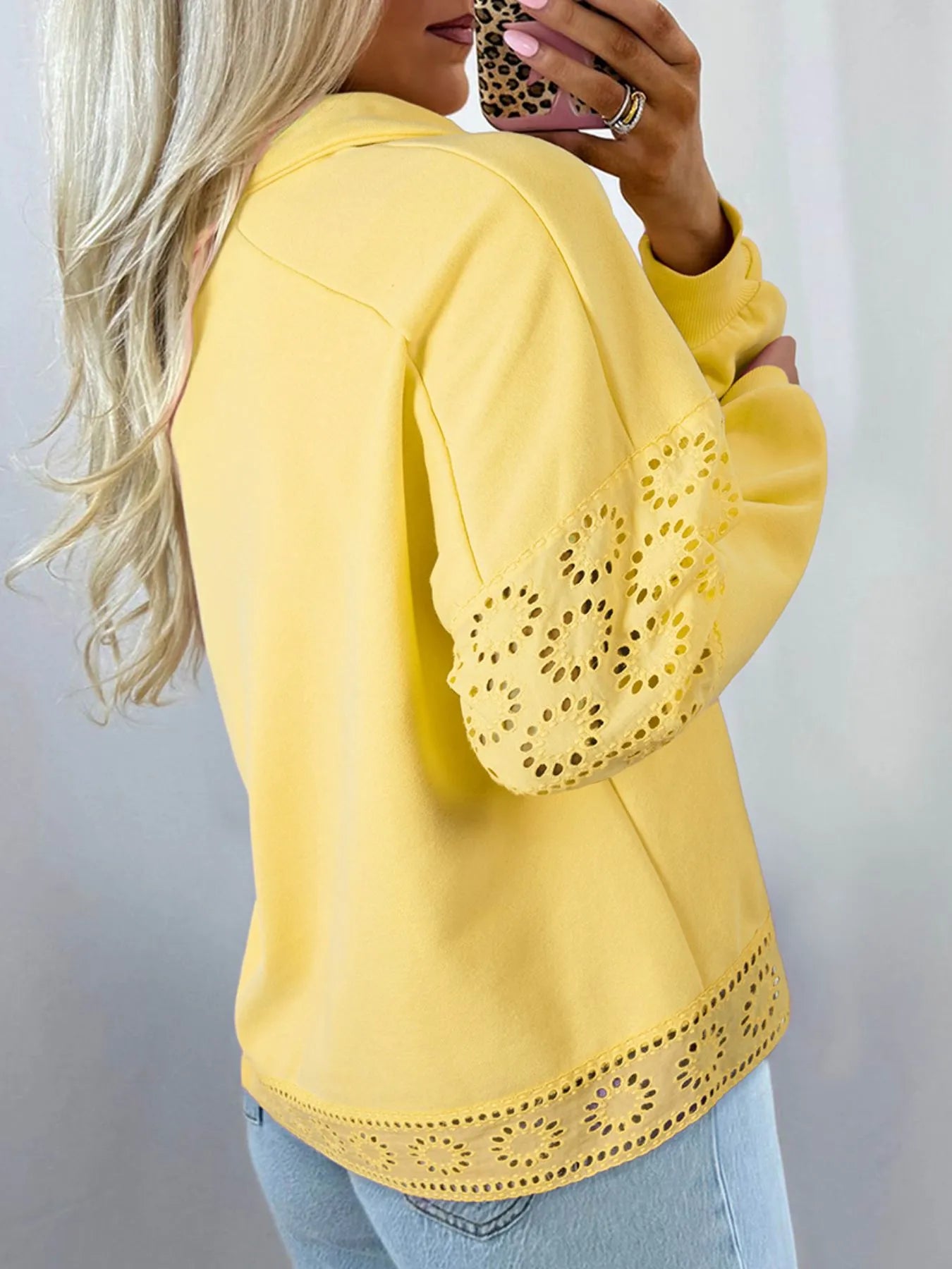 Velste Eyelet Lace Detail Snap Down Sweatshirt
