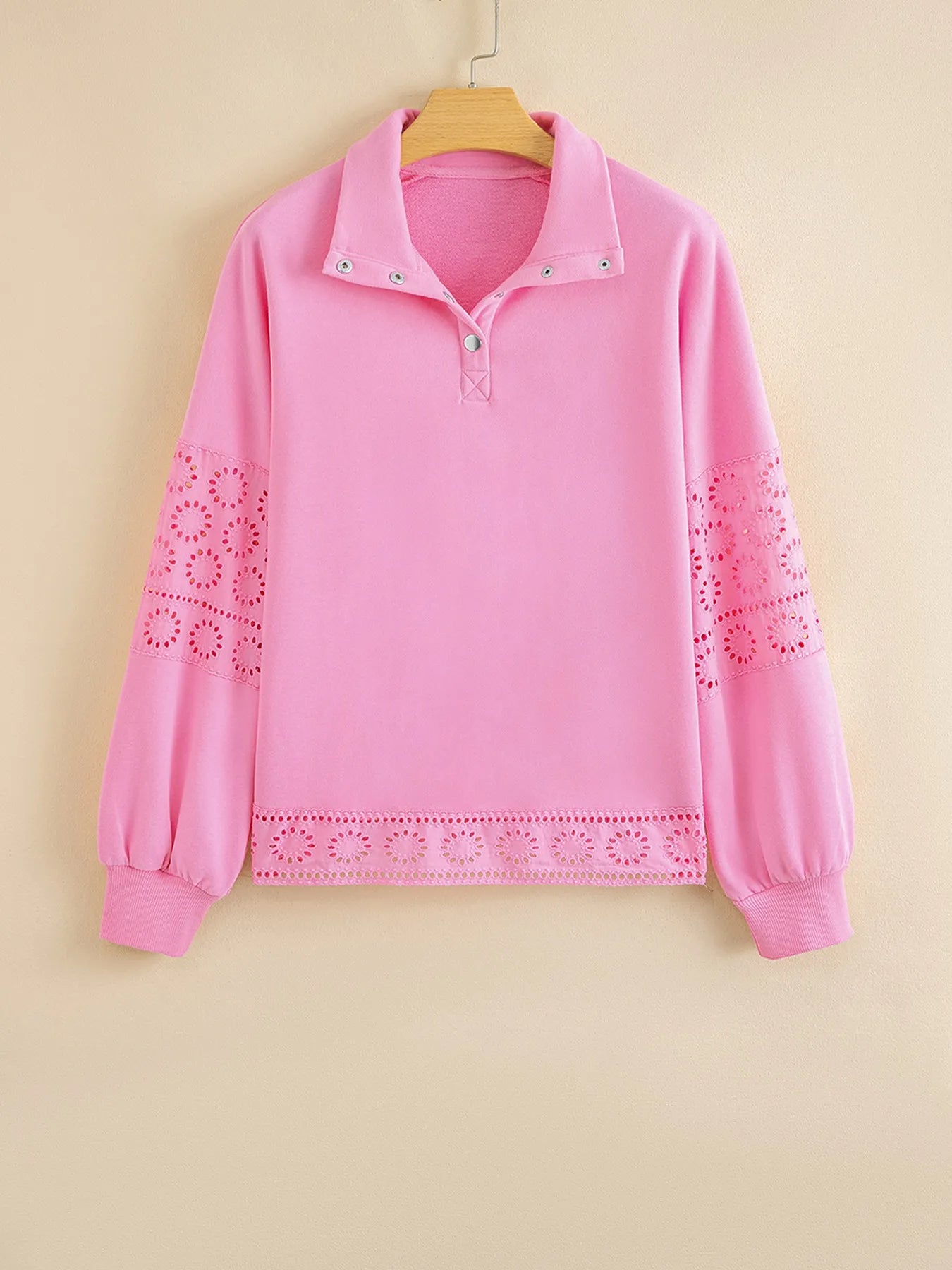 Eyelet Lace Detail Snap Down Sweatshirt