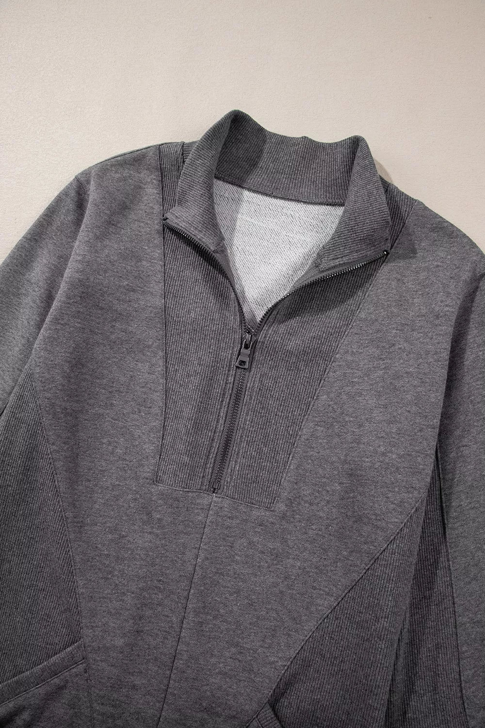 Velste Zip Front Long Sleeve Sweatshirt Dress