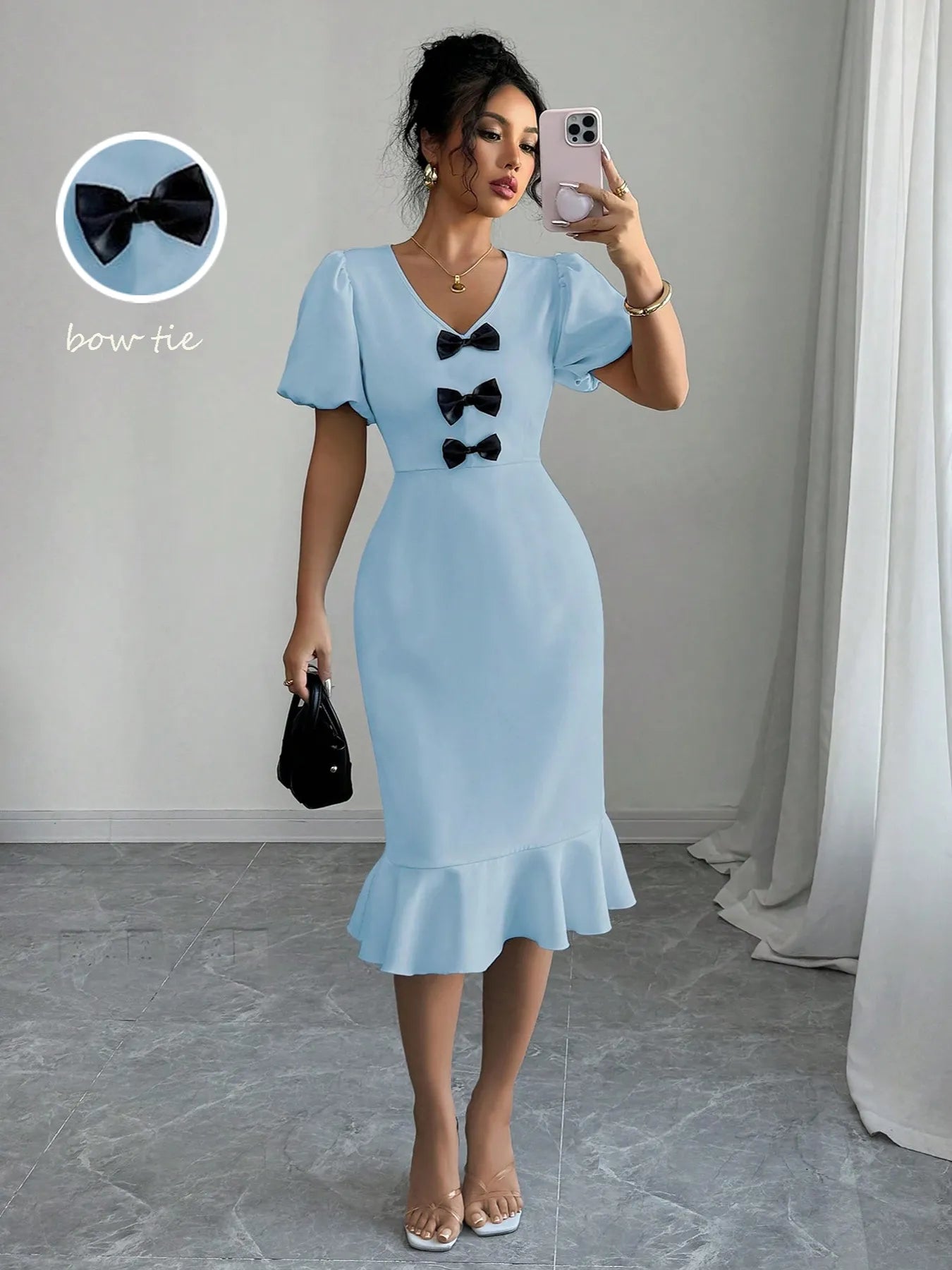 - Features:Bow,Ruffled