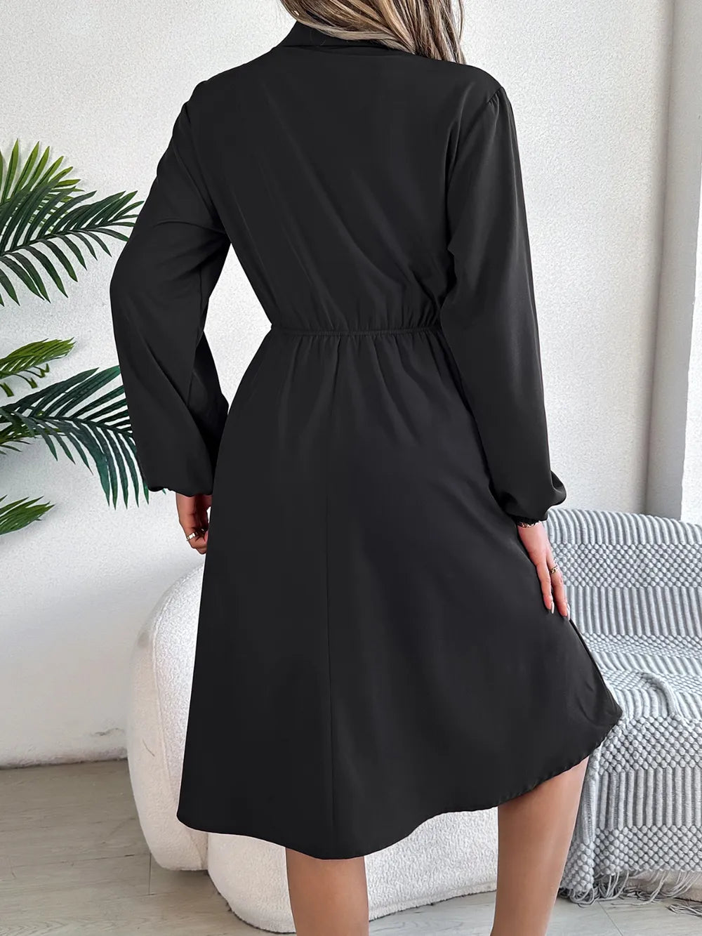 Velste Collared Neck Long Sleeve Dress with Pockets