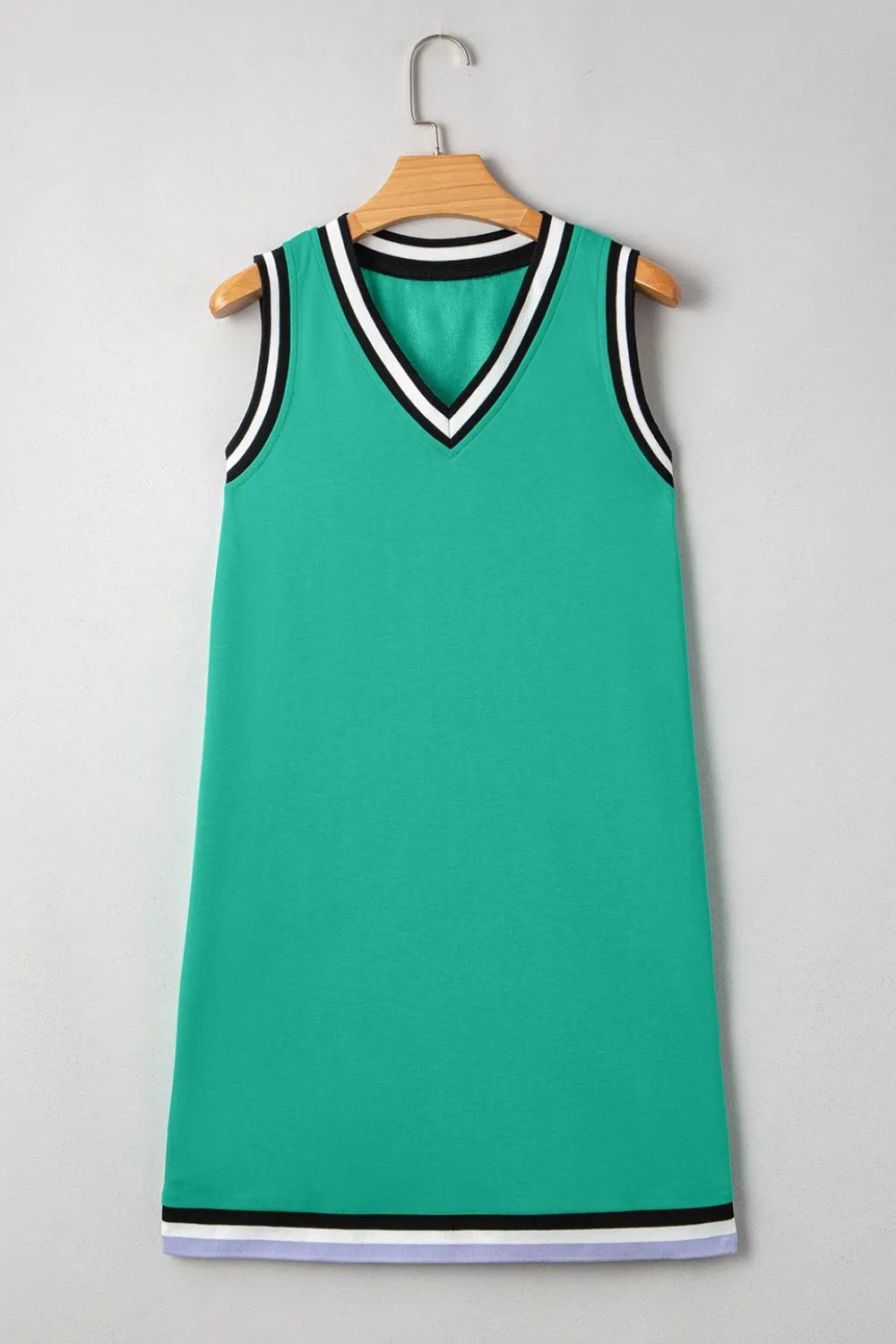 Color Contrast Trim V Neck Shift Sleeveless Mini Dress
