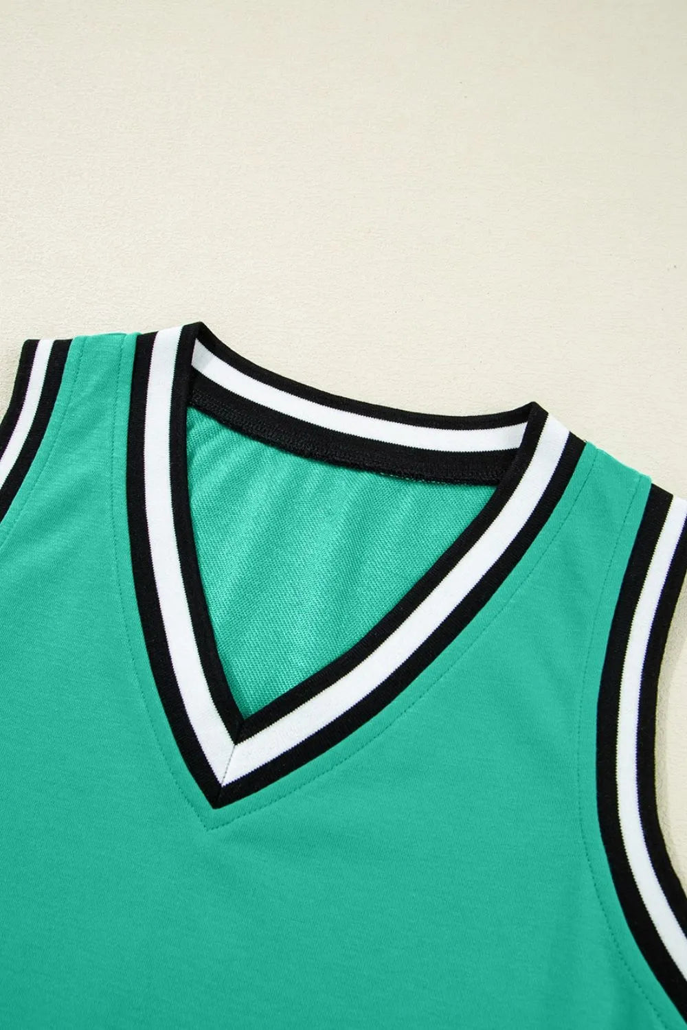 Velste Color Contrast Trim V Neck Shift Sleeveless Mini Dress