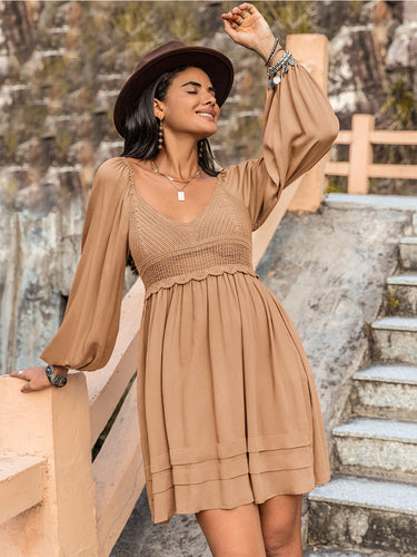 Velste Crochet V-Neck Balloon Sleeve Dress