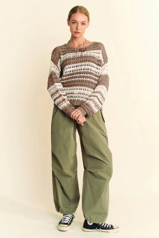Velste Davi & Dani Contrast Striped Crochet Drop Shoulder Knit Cover Up
