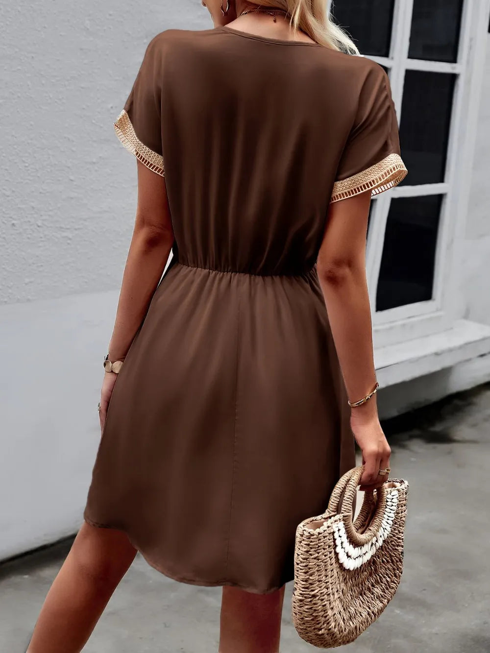 Devine Contrast Trim V-Neck Short Sleeve Mini Dress